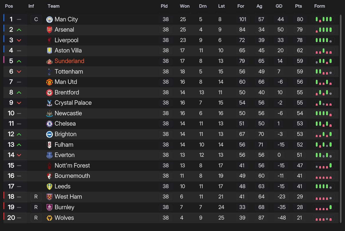 | PTS | GD | GF | GA | PLD |
