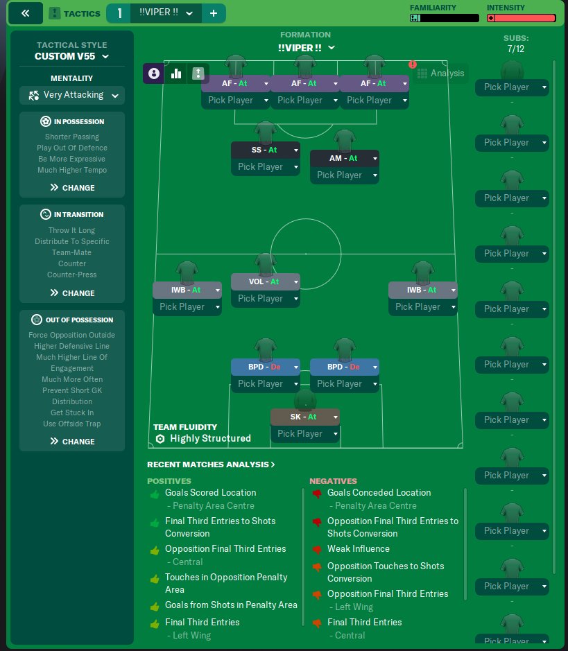 i found most of this tactic from one of my old ones in 2019 fm tried it and went off like a rocket dont know how this will go on testing but it is a very attacking tactic i tried this on holiday mode and scored 175 goals but in real gameplay i think will score more im currently playing a season so i will find out if it does soon
