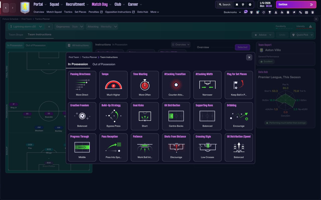 - Switched the build-up strategy from "play through press" to "bypass press"