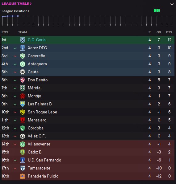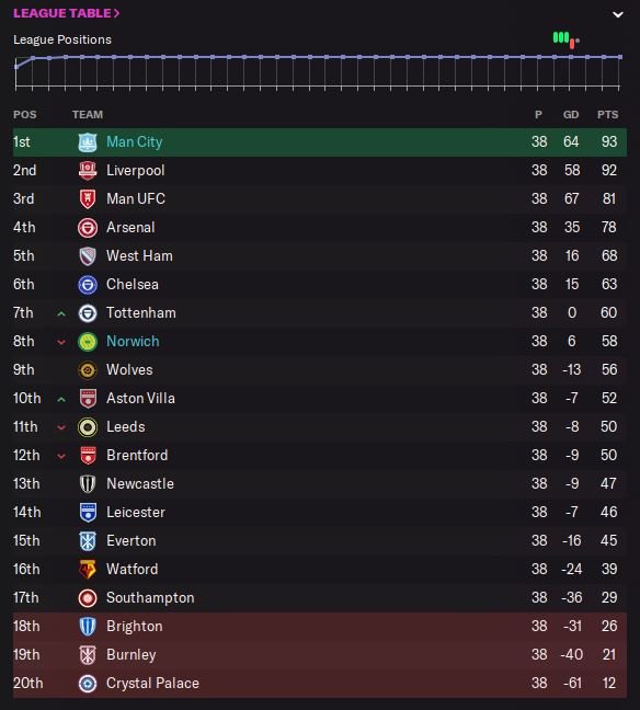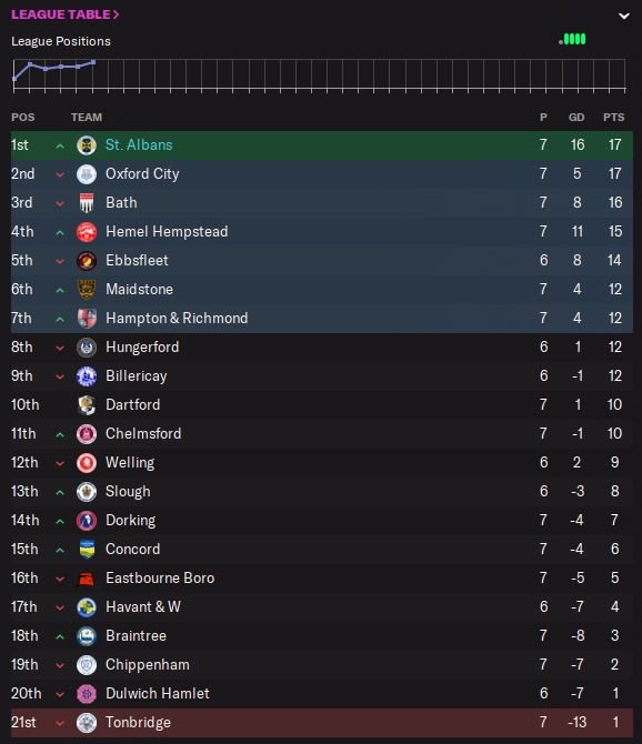 This is the best of my tactics using ZaZ Testing League. Man City on top and Norwich in 8th. I have based it on Dragons Breath and changed some of the PIs. Also adapted Fanecas set pieces. I have run this very successfully in a couple of lower league jobs. My current save is with St Albans in VNS and C.D. Coria in Spain. Both were expected to be relegated and I am leading the League in both comps albeit early in the season.