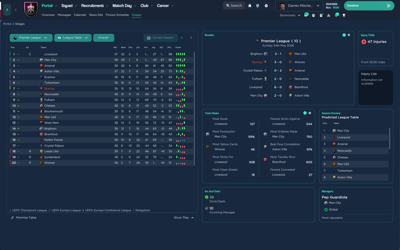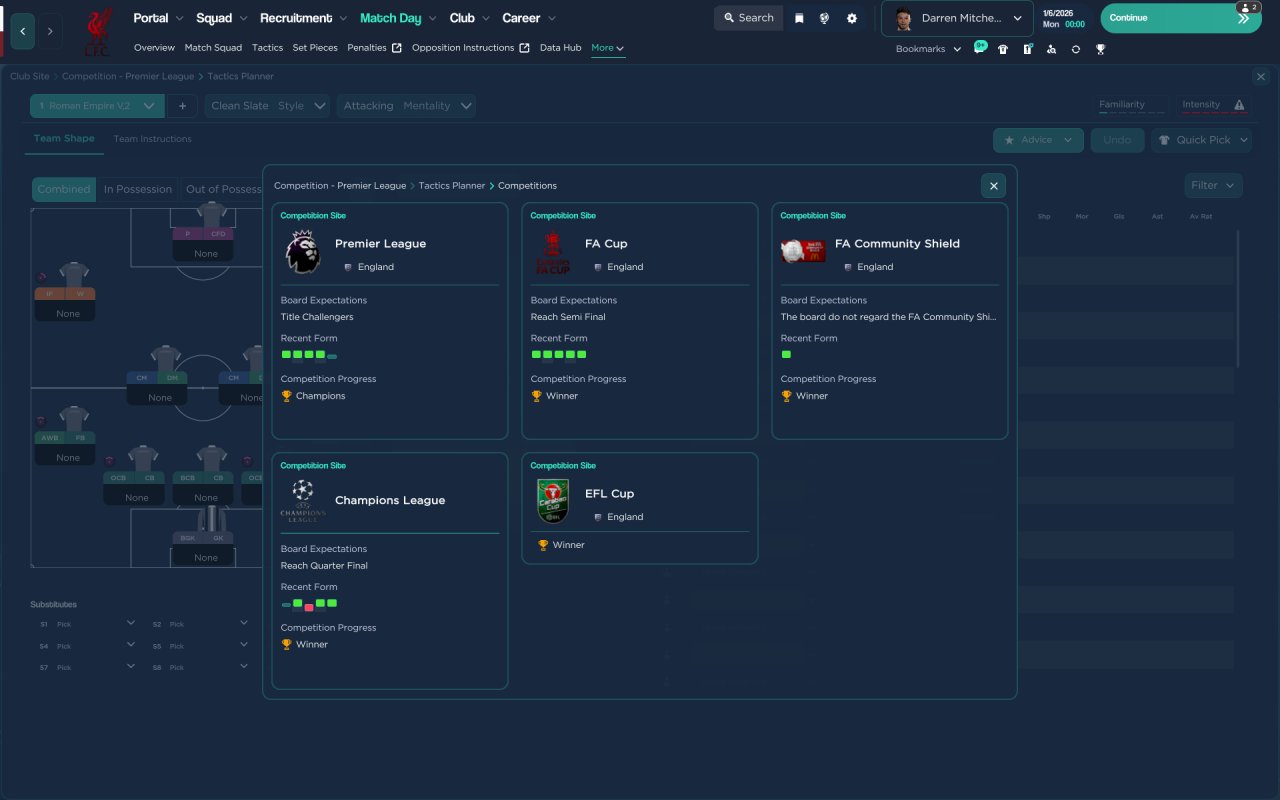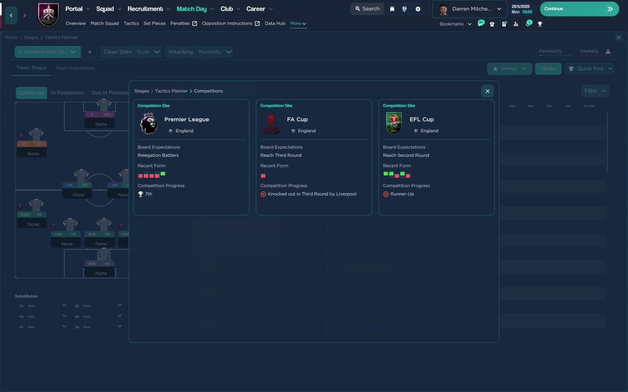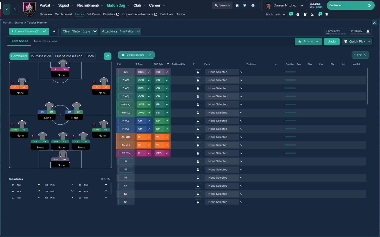 Tactic i used to finish 2nd with St mirren first season no transfers so thought id holiday test it with top and bottom team in english premiership i prefer playing with a striker than the strikerless formations haha