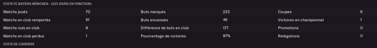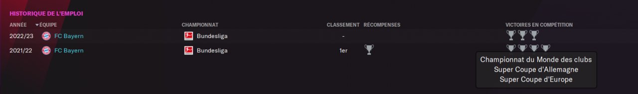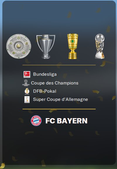 2nd season in progress with bayern. After last year's quadruple, already 3 more trophies for now: the Club World Cup, a new German SuperCup and the European Super Cup... 60 matches without defeat, ongoing series