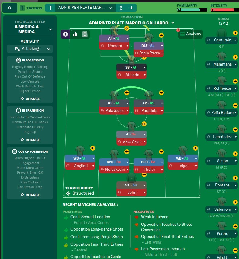 SEBASTCARP said: This tactic is created by emulating the last tactical system used by MARCELO GALLARDO in RIVER PLATE, which he used with a large part of the players emerged from the RIVER PLATE quarry, imposing his soccer style as a hallmark, aimed at fans and non-fans of RIVER PLATE , I would love to submit it to your analysis