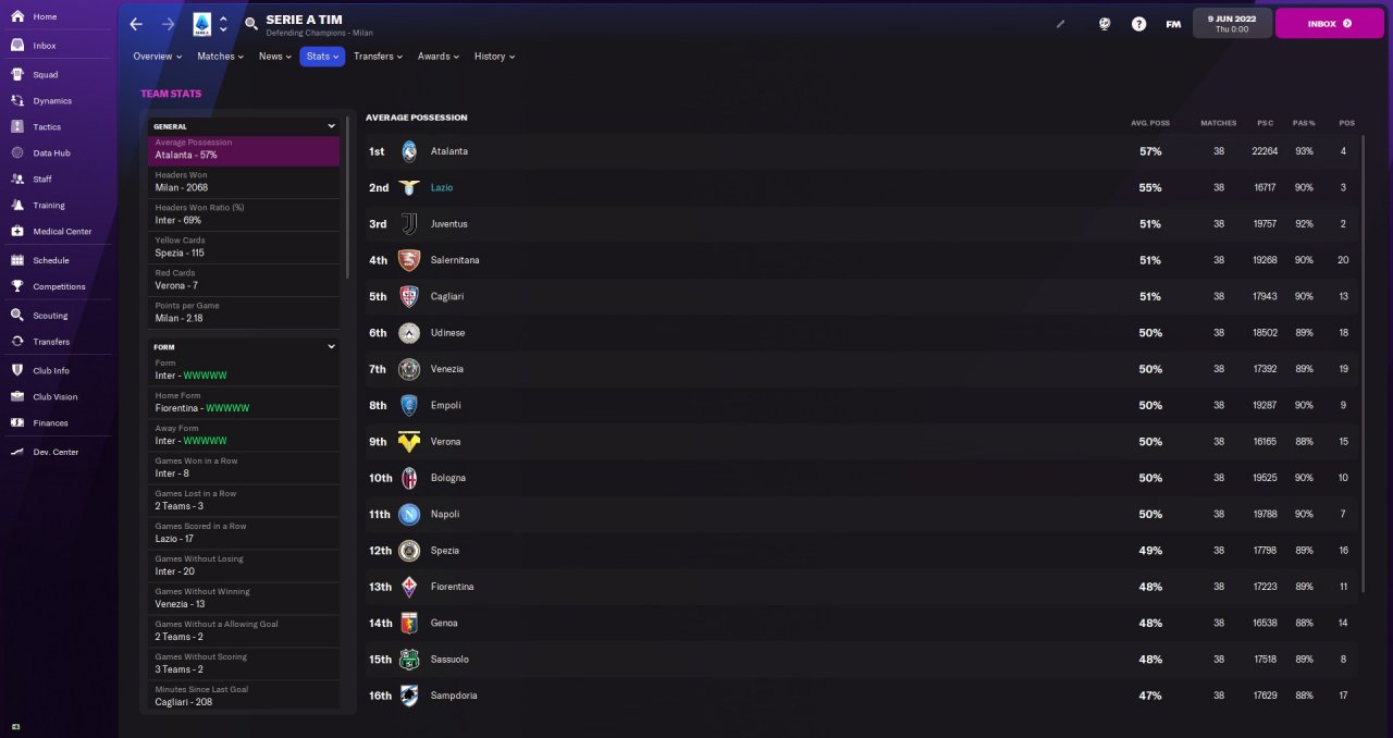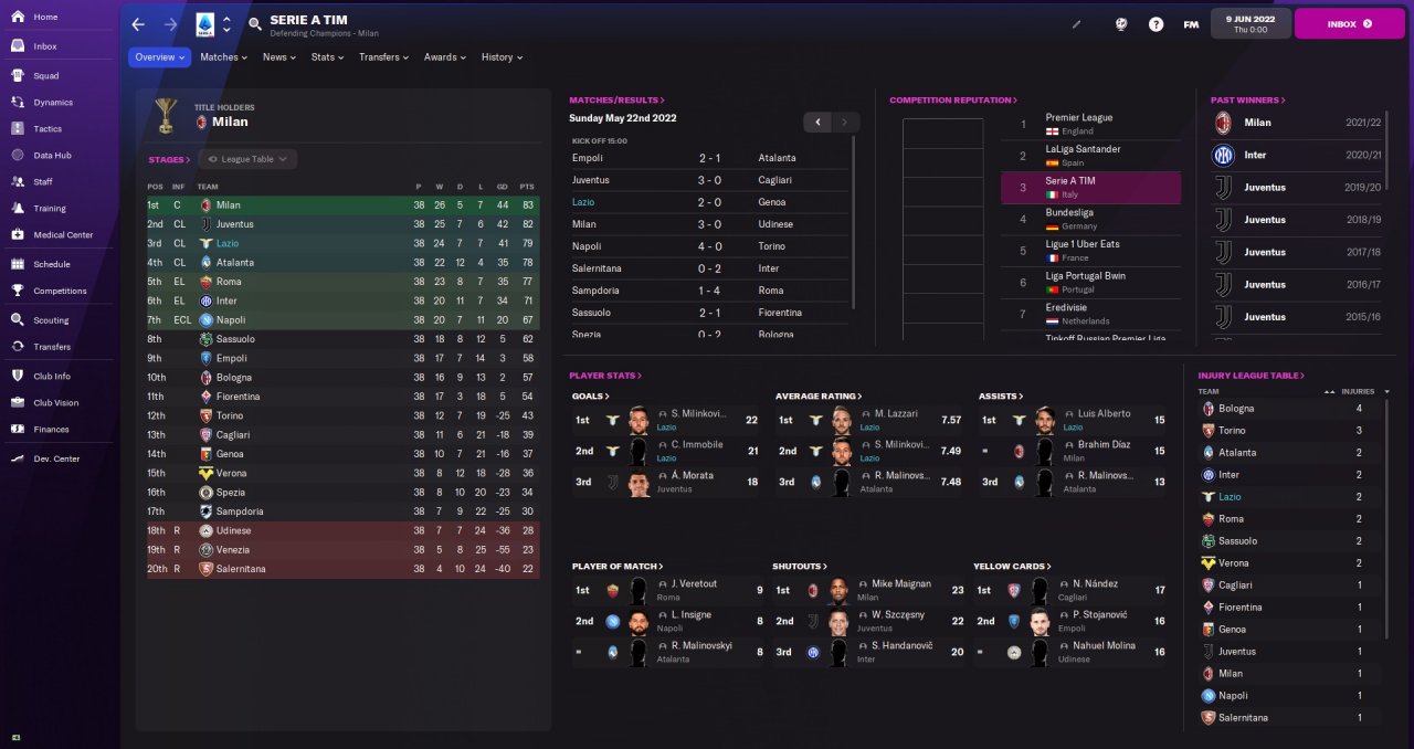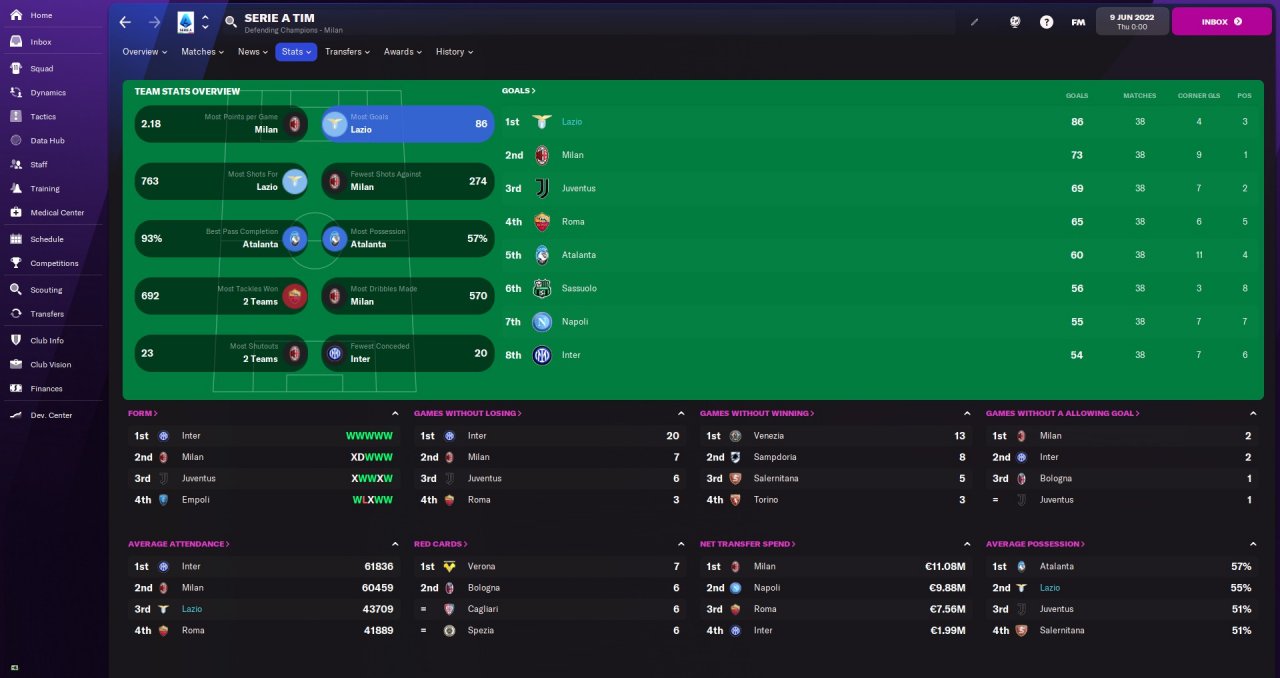 Lazio first season finish 3rd