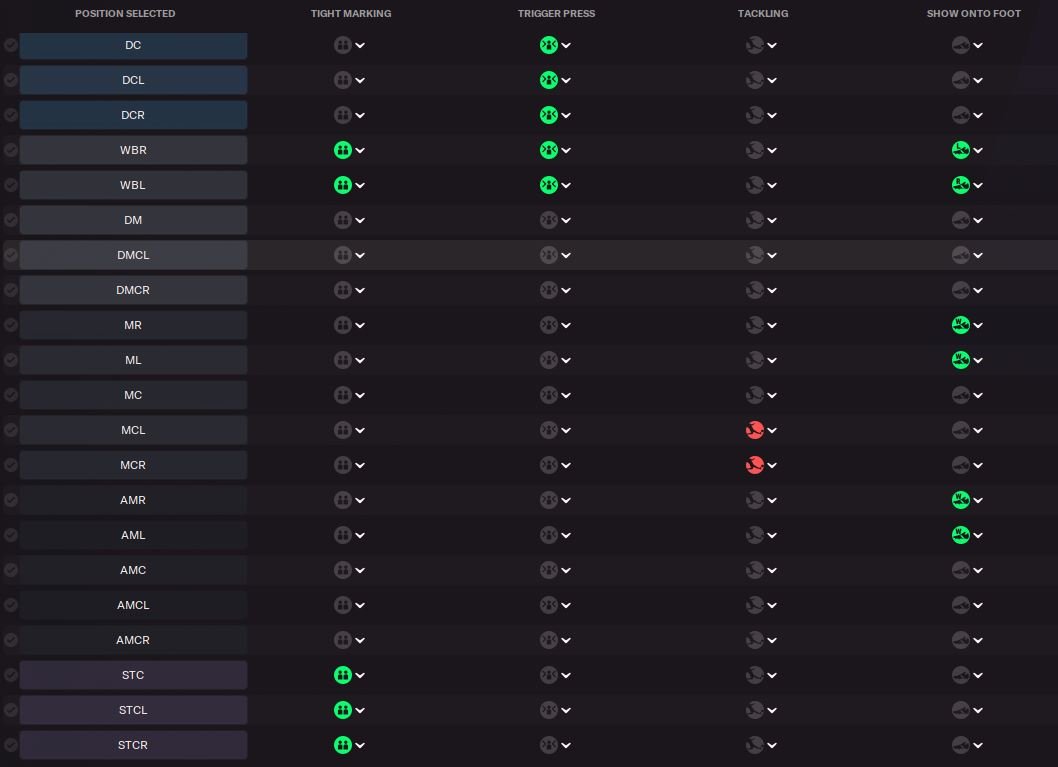 I set it to position, but there's a bug in the FM. so you have to set it to the left on the opposition like this.