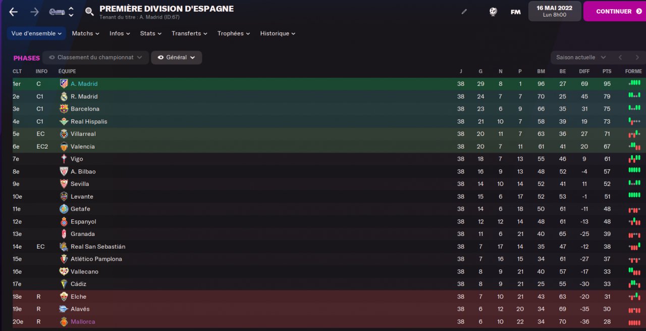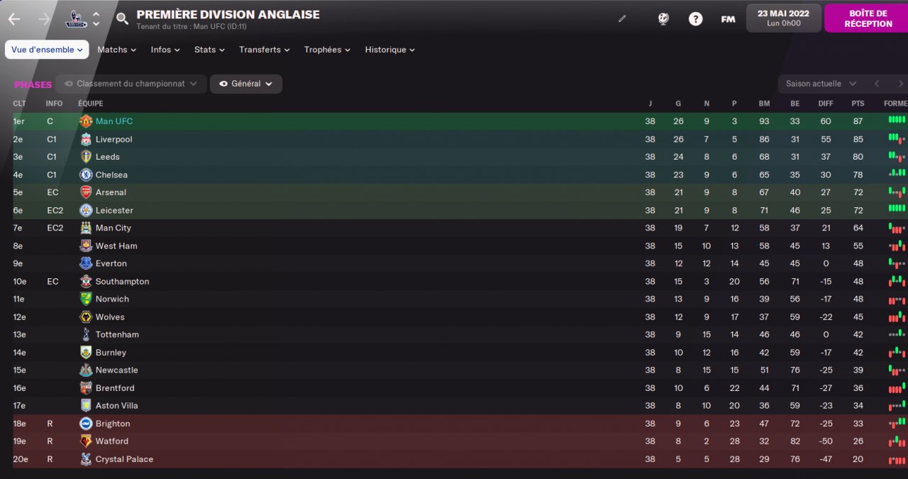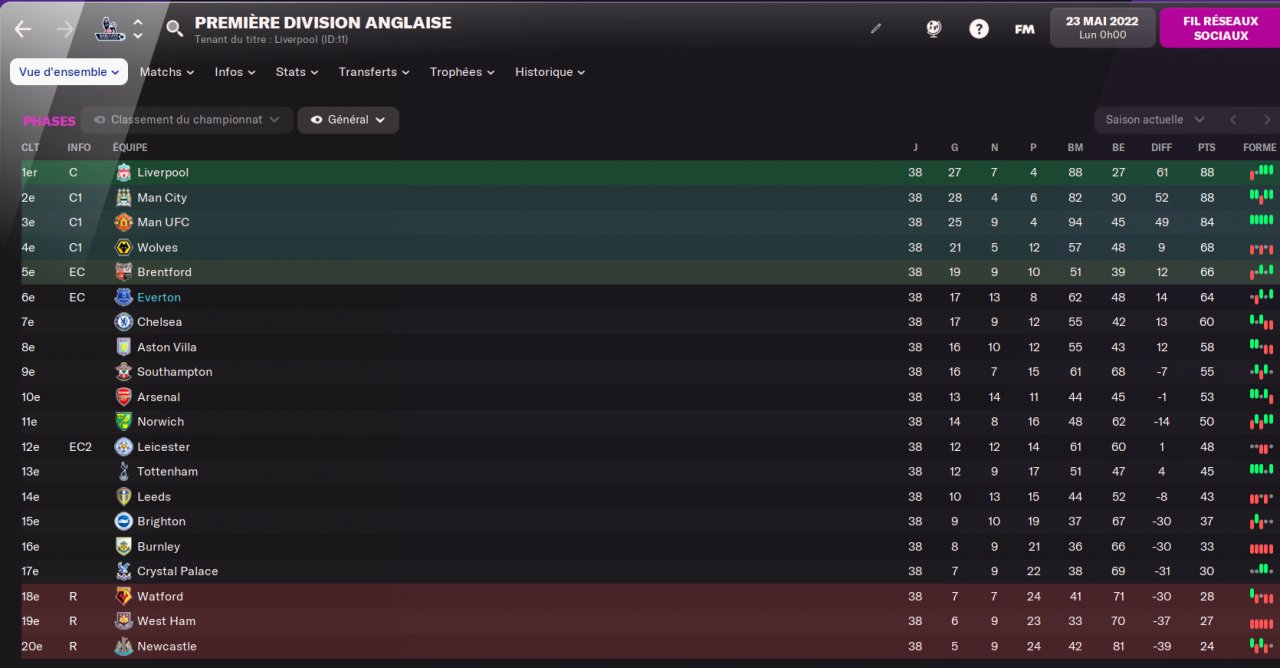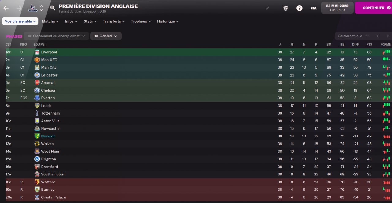 I tested it with Norwich (12th) and with Manchester United (Champion).