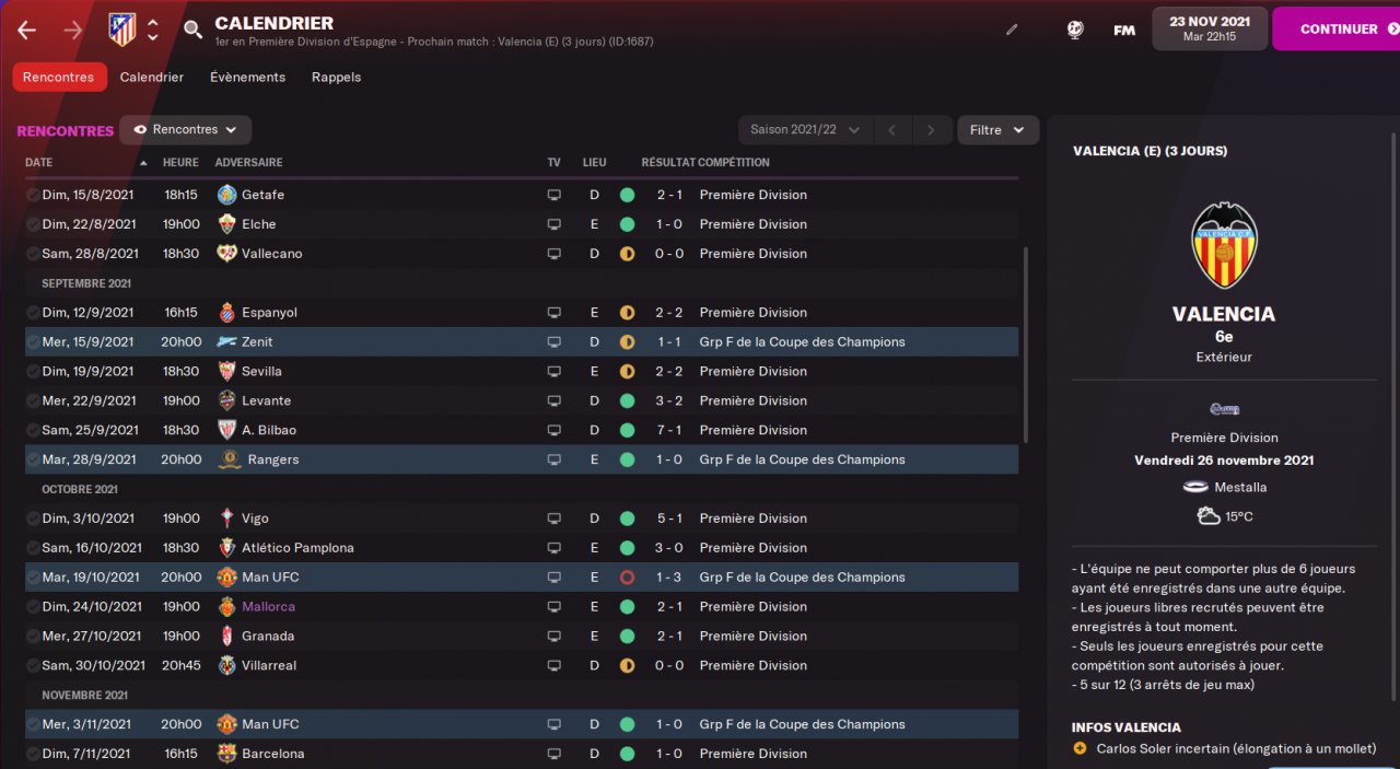 after 14 matches with Atletico
