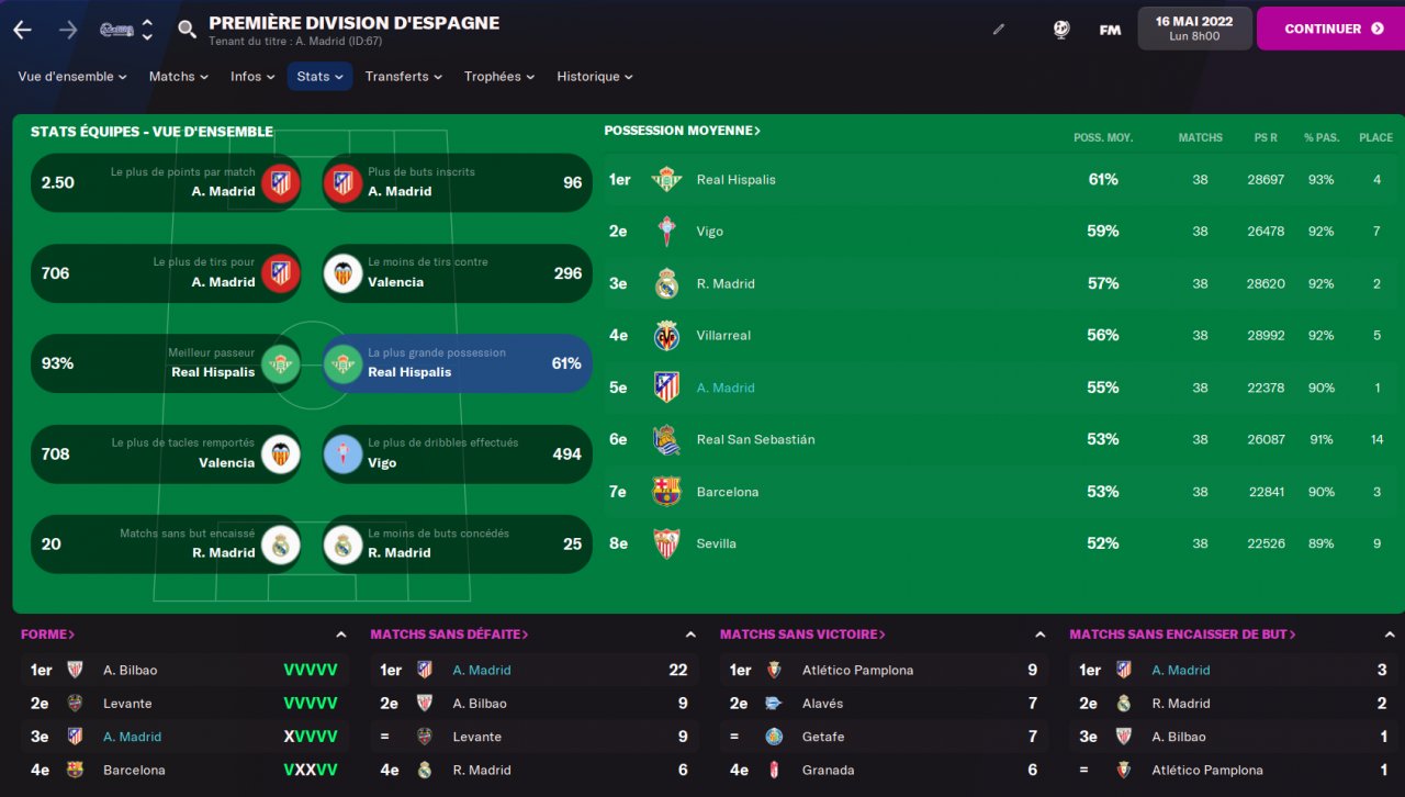 No money to recruit, best attack, 2nd best defense, top scorer, good possession