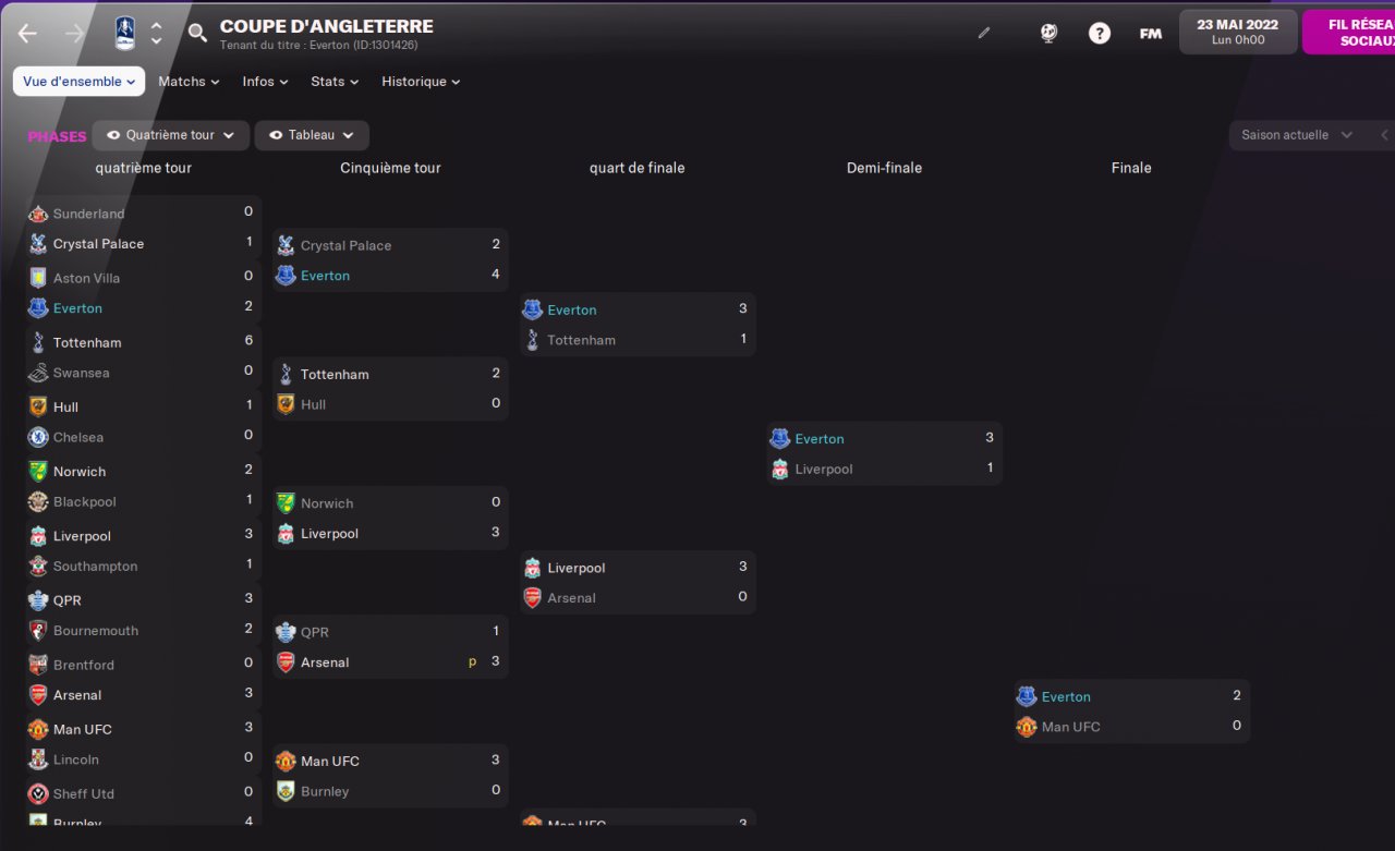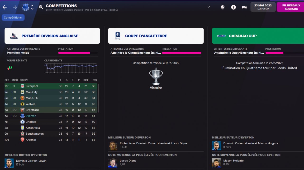 Holiday test with Everton. 6th and winner of the cup