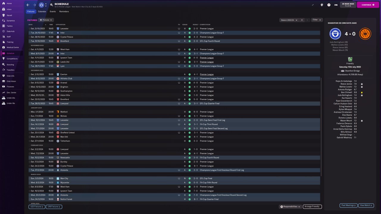 I did holyday test with 5 teams of Everton, Birmingham, Gillingham, Carlisle, and Eastleigh.
