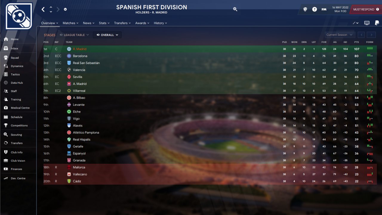 My thin squad realy did me in this time.Still pretty satisfying results overall after 5 season. Next season expectations for me at least . Win the league and at least quarter finals in the cl.