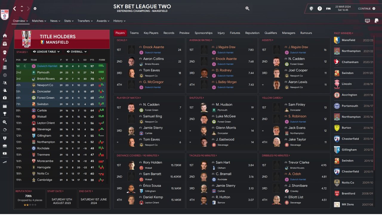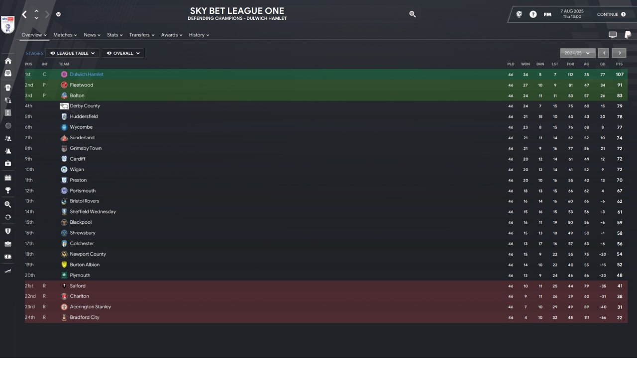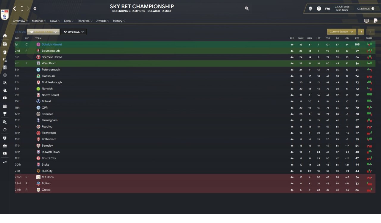 Championship(predicted 23/24) was another matter, harder but again managed it in the end. The financial deficit really started to show so it wasn't a walk in the park like previous season.