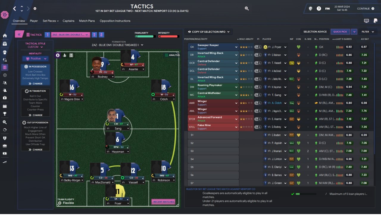 So i continued using the tactic and kept improving my squad. So i won League Two and League One fairly easy . Championship(predicted 23/24) was another matter, harder but again managed it in the end. The financial deficit really started to show so it wasn't a walk in the park like previous season. Also with a squad not up to par it was really hard to win playing Sat-Wed-Sat.