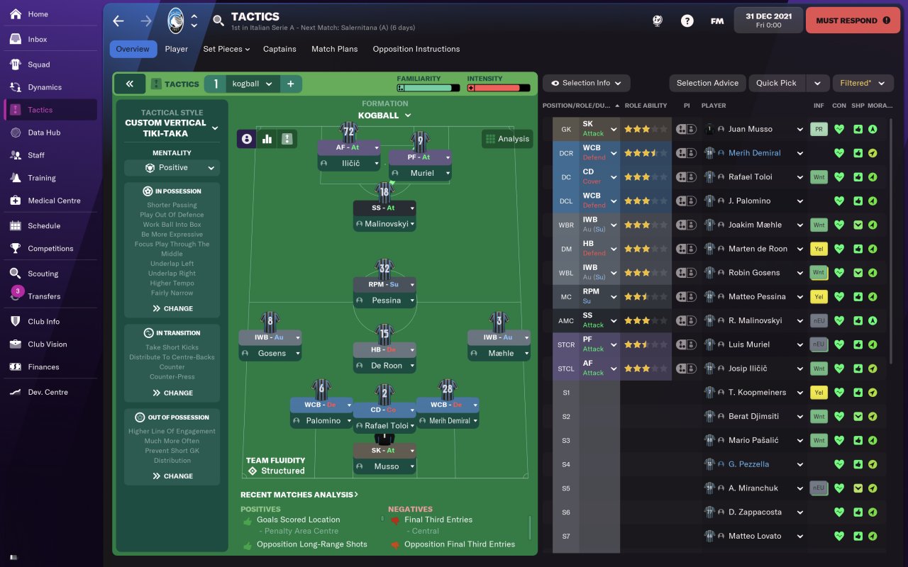 Tried this with Atalanta, extremely strong defence while still scoring a decent amount of goals. Lost one game so far this season. Does require good WBs and SS. have not tried with an underdog but anyone else feel free.