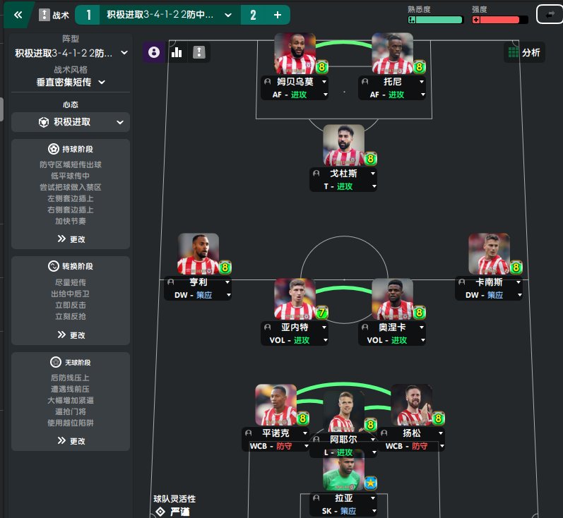 The core of this tactic is the position of the personnel, and the selection of my favorite number nine and a half and free men. On offense, you can think of it as three forwards, two shadow forwards, five forwards, and a free man who is inserted in the back. There is no need to worry about the offensive firepower of the lineup. Defensively, the double-back midfielders are in a deep position, and the defenders have barriers in front of them, so they are not afraid of counterattacks from the opposite side. Battle of positions. The No. 9 squad will withdraw and hold the ball, and will move forward when there is no ball, tearing open the opponent's defense.