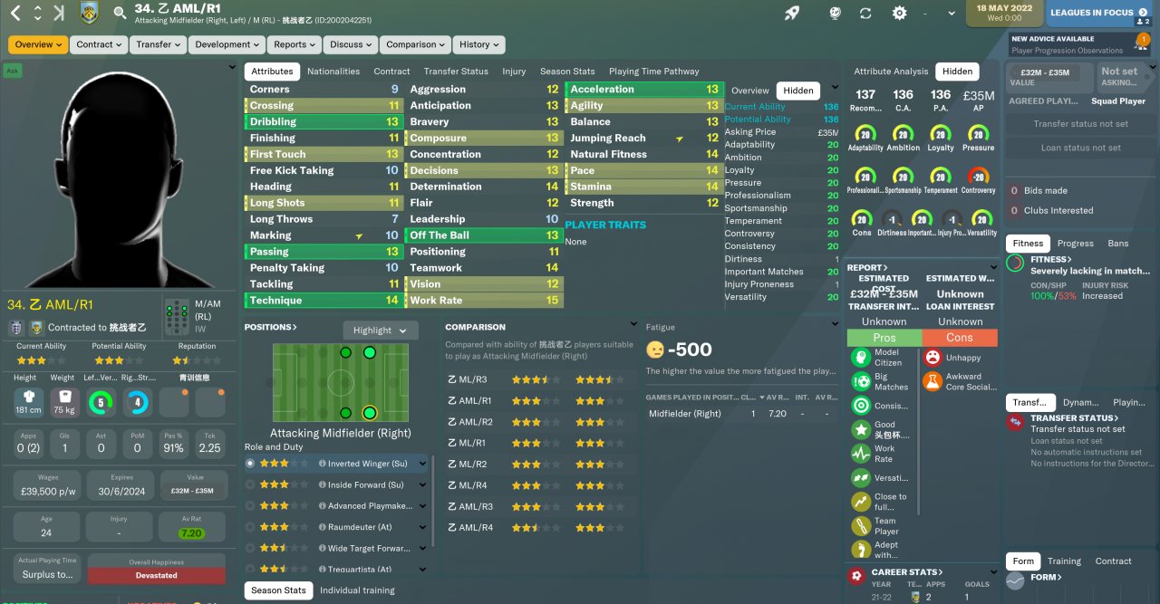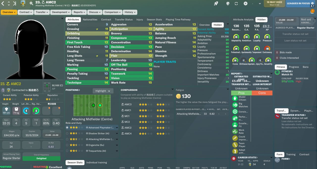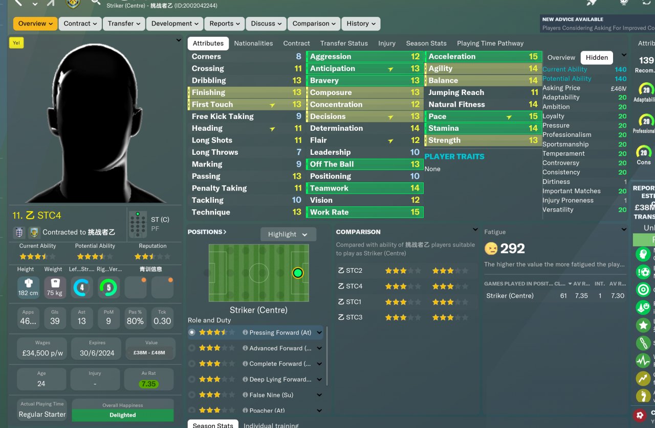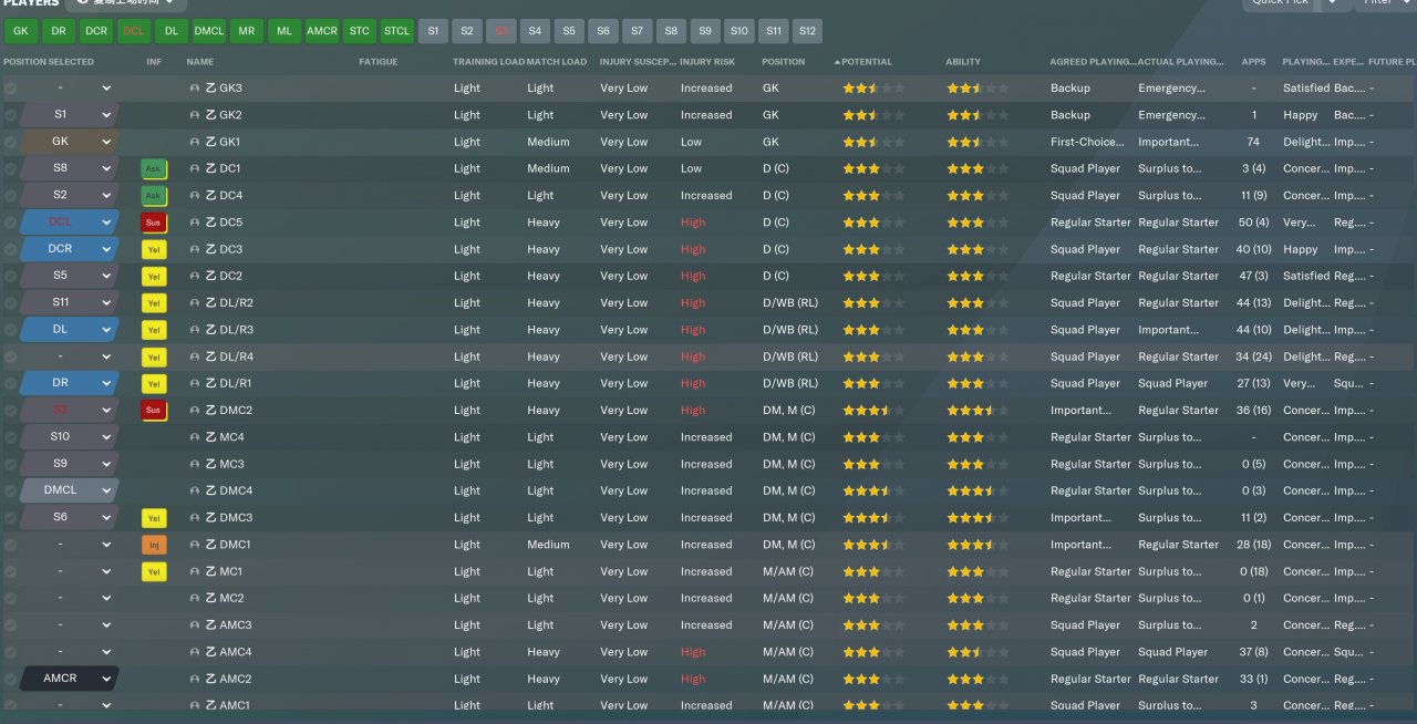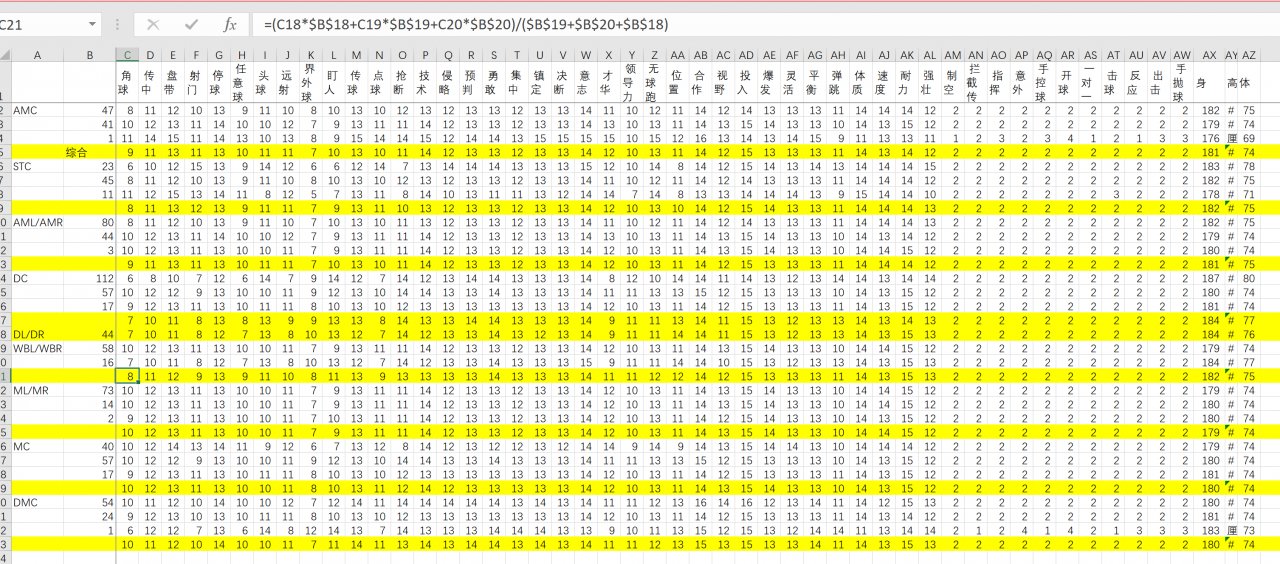Take the actual ability of the first-line players of all 20 teams in the Premier League as the test file of the average number of each position. The ability of the players of each team is the same in the same position, taking into account the left and right feet and players in different positions.