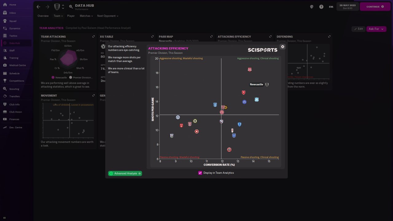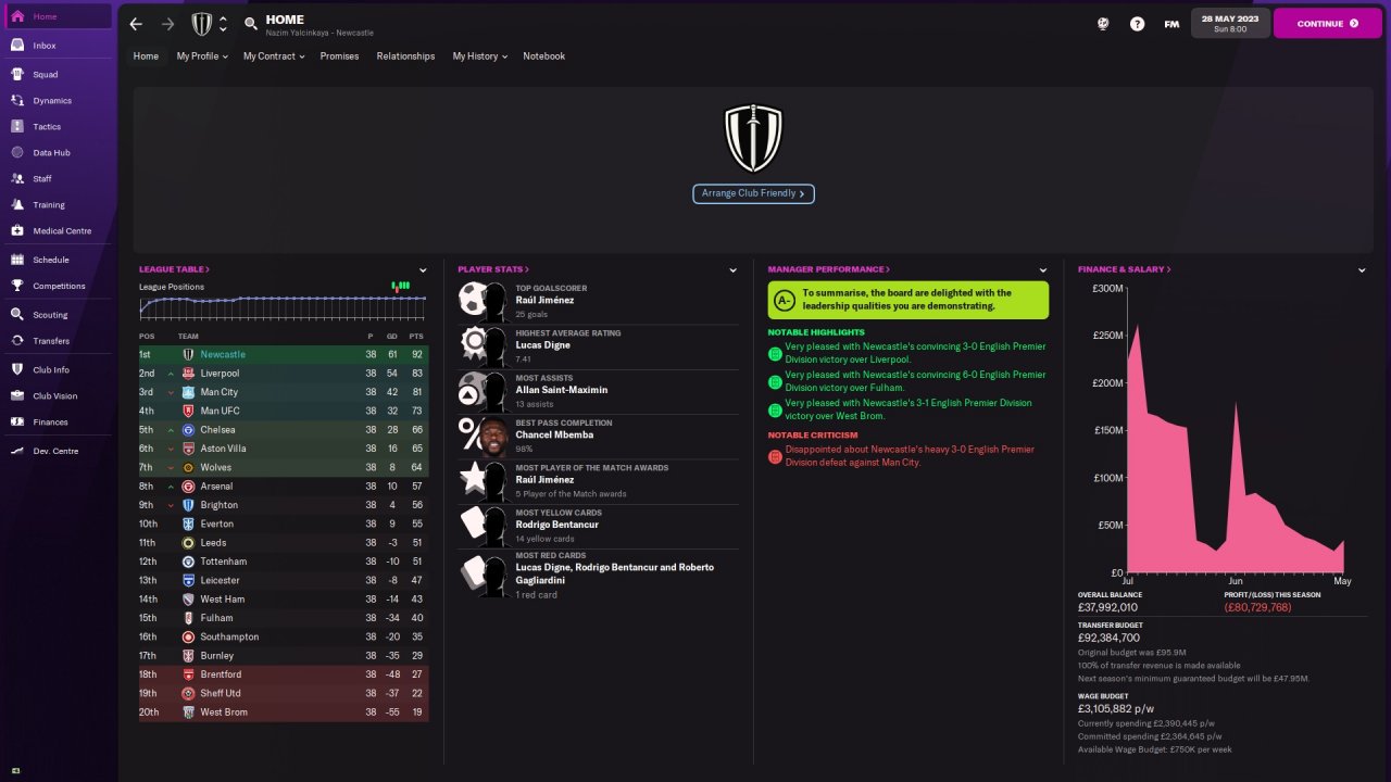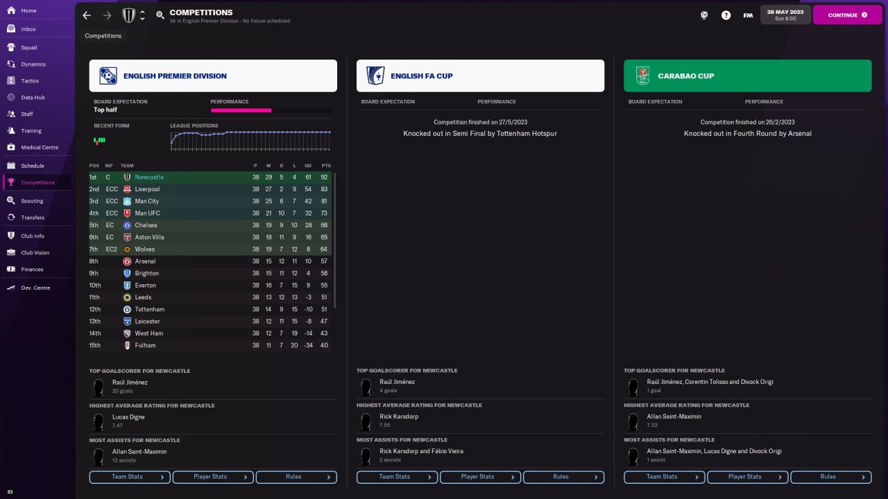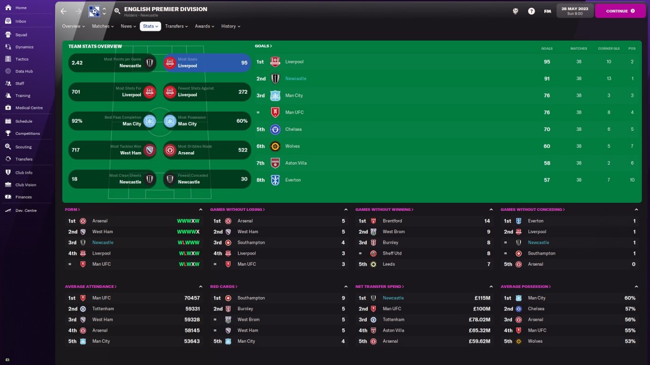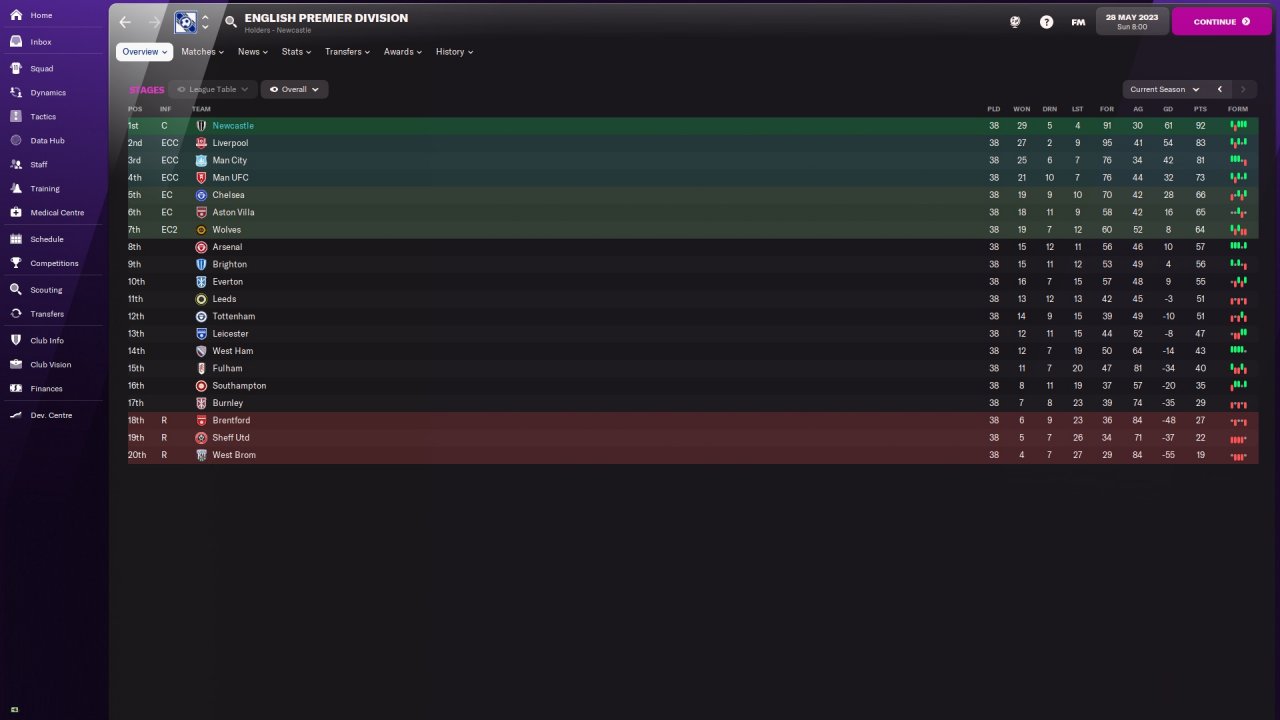 This is the first ever successful tactic I've created. It is based on mixture of counter attacking & Gegenpressing. I took over Newcastle in January 22 and managed to win Premier League at 22/23 season.