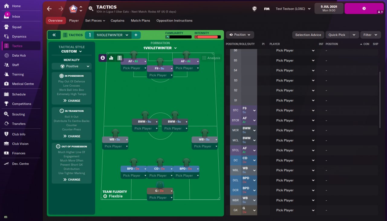 First of all, shoutouts to the Laziale for the backline and lack of offside trap. I tried to tweak it but honestly there's not much I'd like to improve there and saw no point in submitting an inferior version of it just to make it more personalized, so I will acknowledge that this tactic has kept a lot of the same roles and instructions. Like most of my own tactics however, this started as a hyper offensive one. It had two Mezzala's running wide, overlapping with WBs on attack but came to realize that it doesn't really bring enough offensive power forward to compensate for the massive hole you leave defensively, which made me question why I had a backline of 5 to begin with. So instead I opted to go the more defensive route, replaced the Mezzala's with BWMs, who -- unlike the SVs in Laziale, aims to win the ball higher up the field and to connect with the striker trio which has been extremely effective this year just as a standalone thing, and was more or less the only strong point of the original version of this tactic.