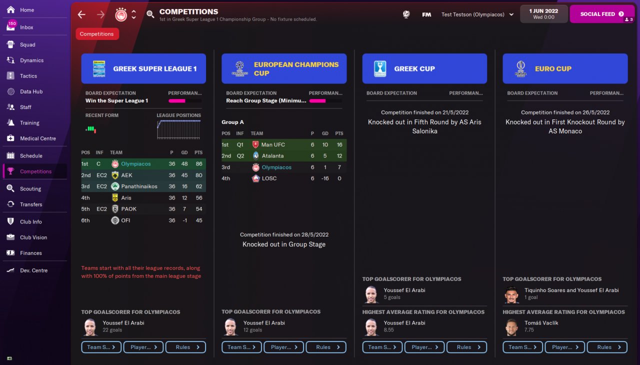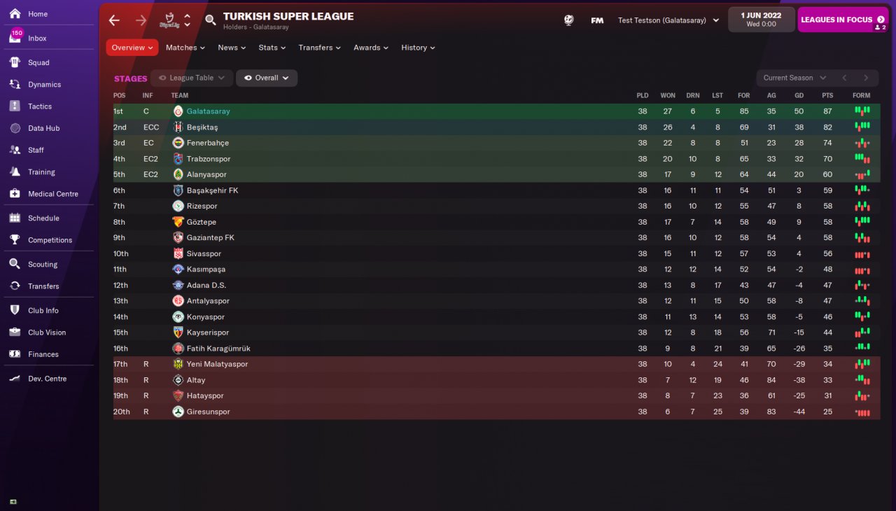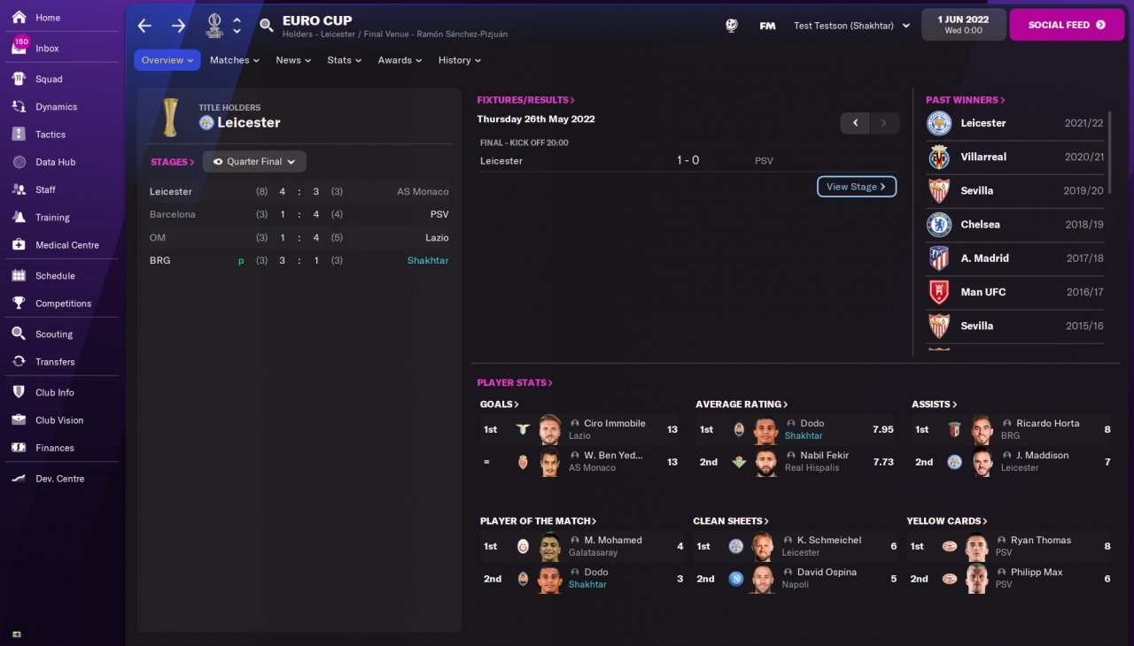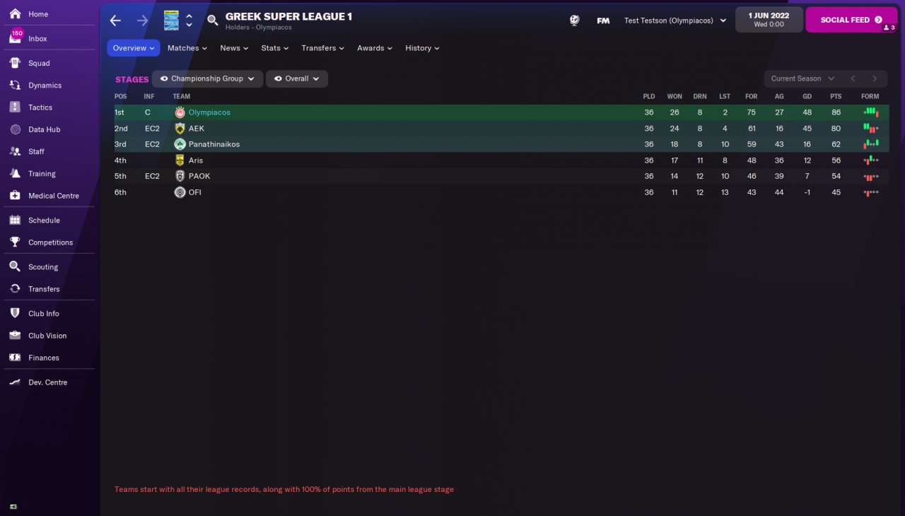 Updated the 1st post with four different runs using this tactic. Quite happy, it's a defensive tactic and performs really well when the teams are near equal but doesn't necessarily destroy teams where the gap is a bit larger like some of these other tactics, which is why my target teams were: 1) In leagues they are expected a top2 finish with at least one similar strength team, 2) teams from all kinds of levels in the league, 3) were in the Champions League.