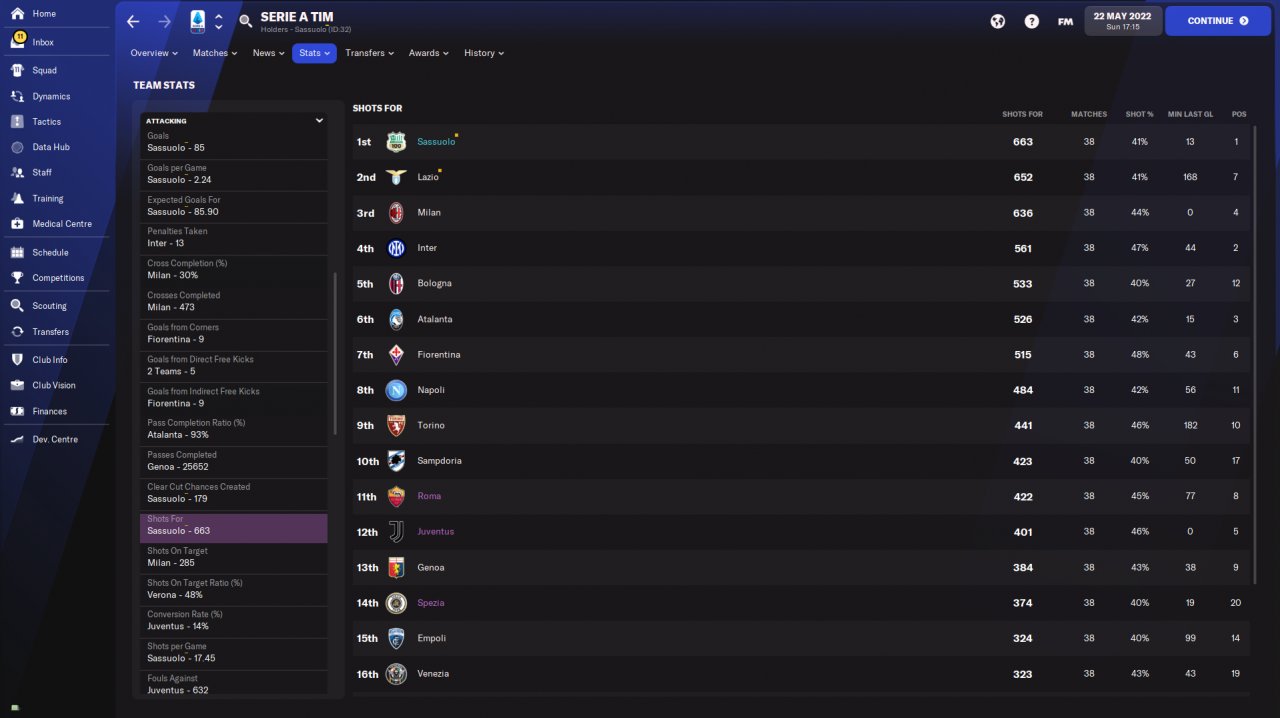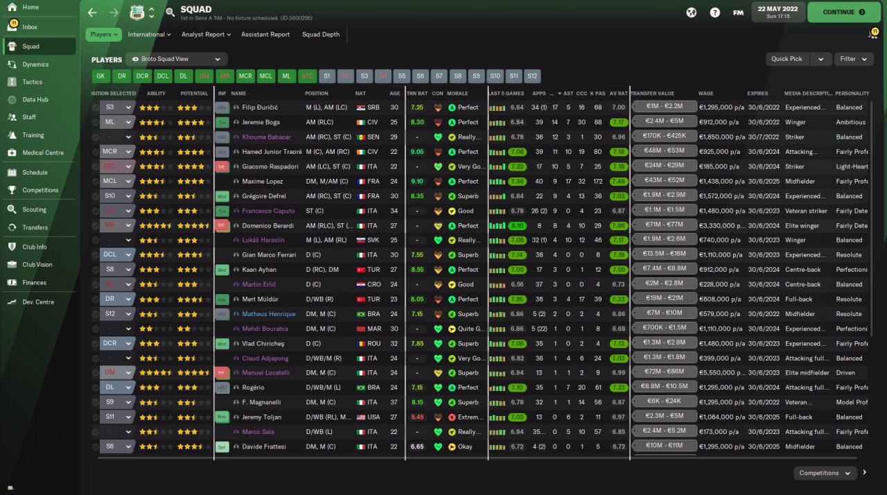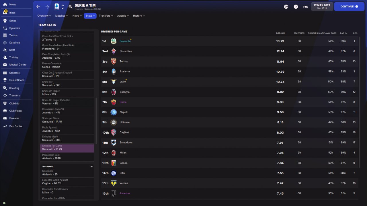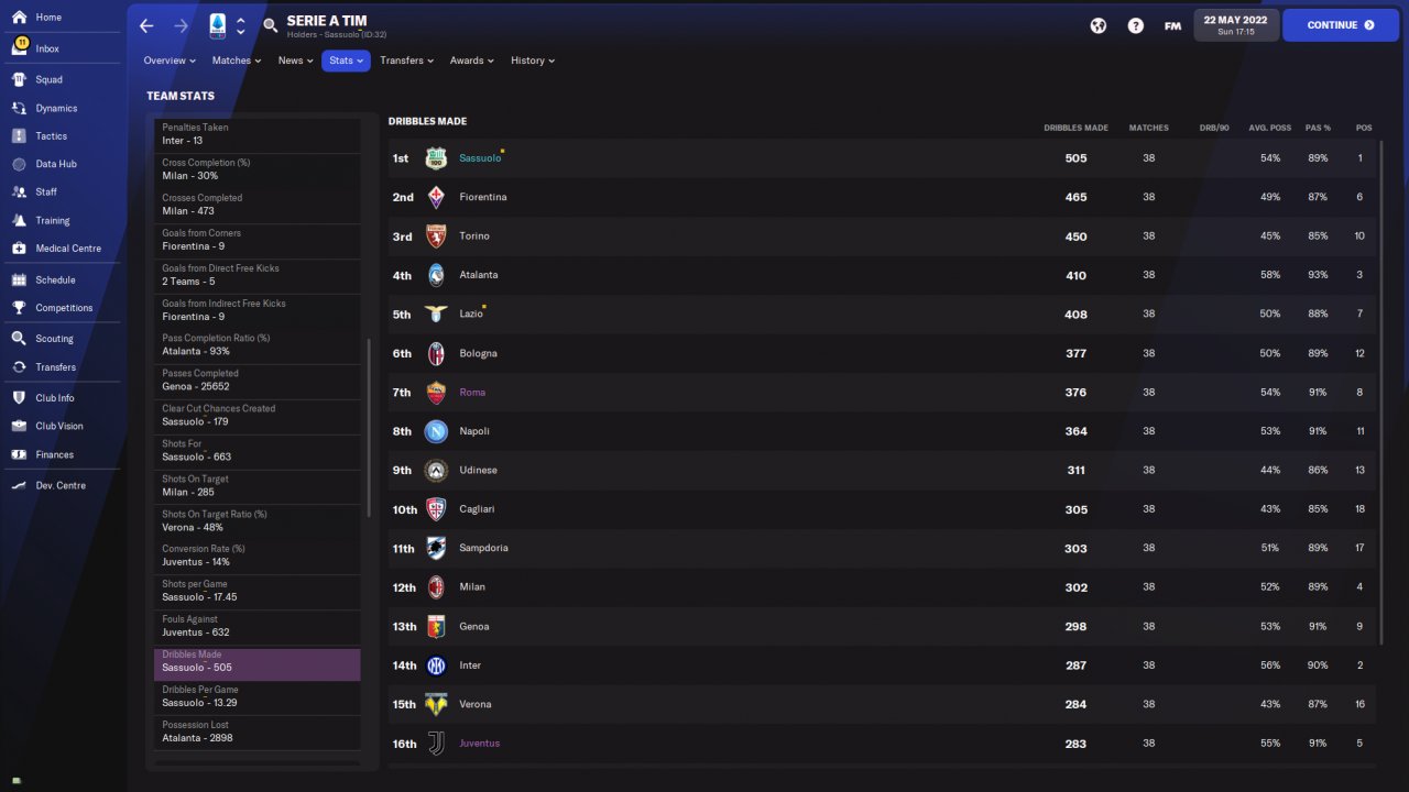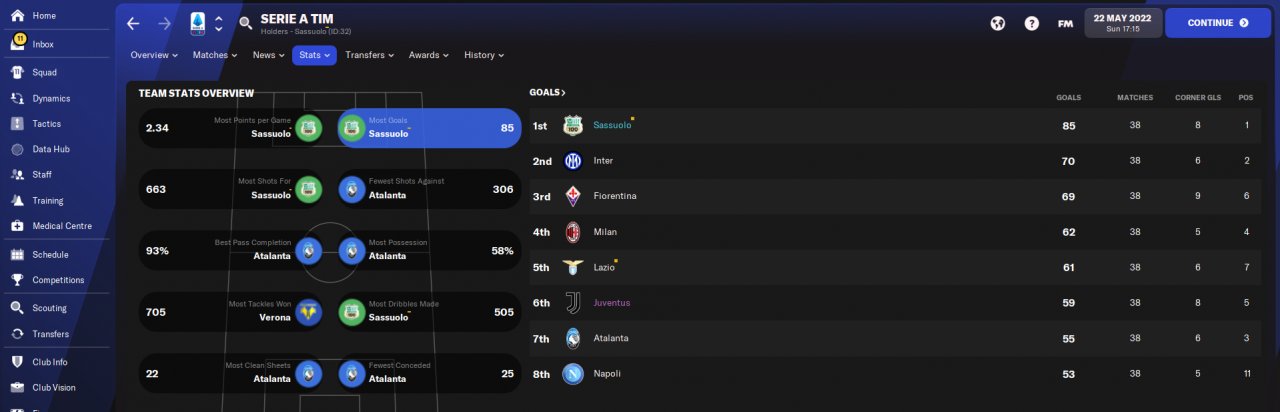 Amazing results amzing year with Sassuolo!I have to suggest you if you want to use this 4-1-4-1 to play with speedy players especially wingers! You need also a speedy striker or a striker with good finishing and pace at least 13-14.Speedy central defenders also.