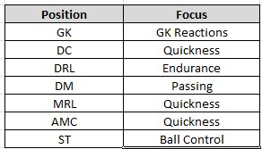 If you look at the attribute values by position and attributes covered by each Individual Focus training item you come up with my table above.
