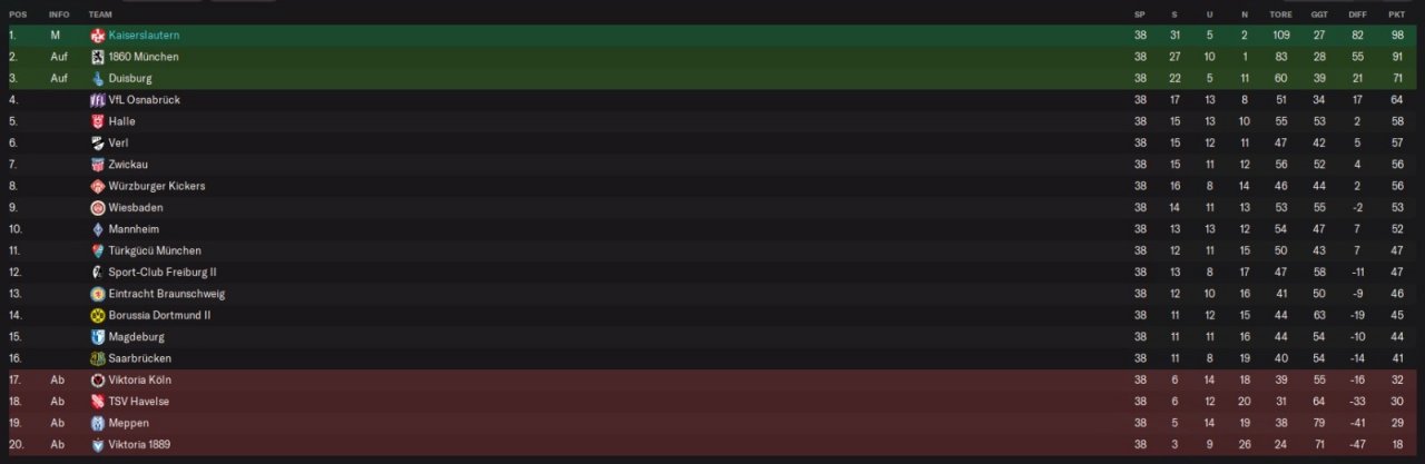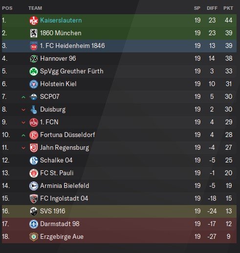 He has won the 3. league and is now in the 2. league again on the first place