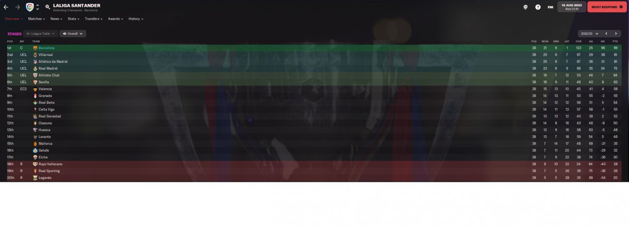 Unfortunately I just started a new season when I decided to post this so I can't show the detailed individual stats from the season, might revisit and show once this one is completed.