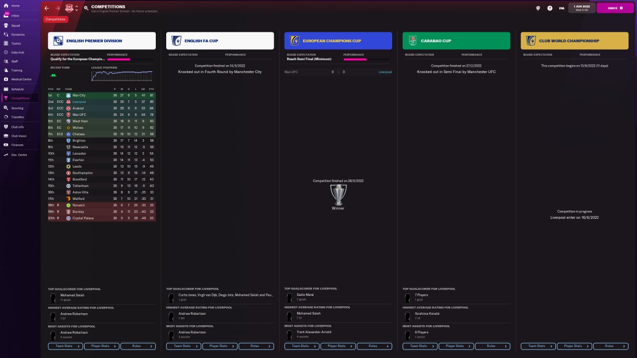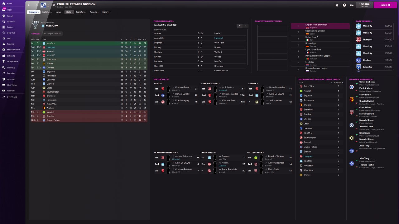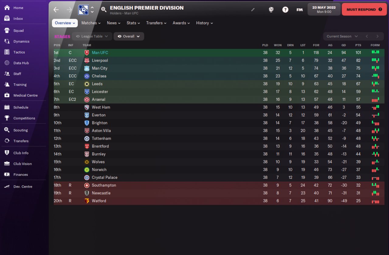 Same test as Lampochka97 with Liverpool, on holiday for whole season, still won EPL and both domestic cups, narrowly lost to Bayern in ECL Semi Finals.