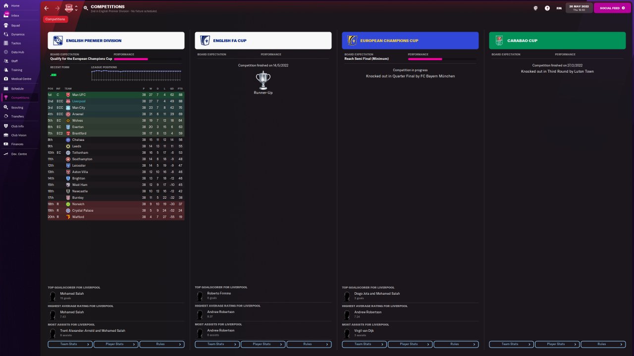 2nd run through with Liverpool, won ECL but far worse performance in the EPL which is evident from the data hub stats. Interestingly Salah missed 4 months of the season injured which may well explain the poor EPL performance!