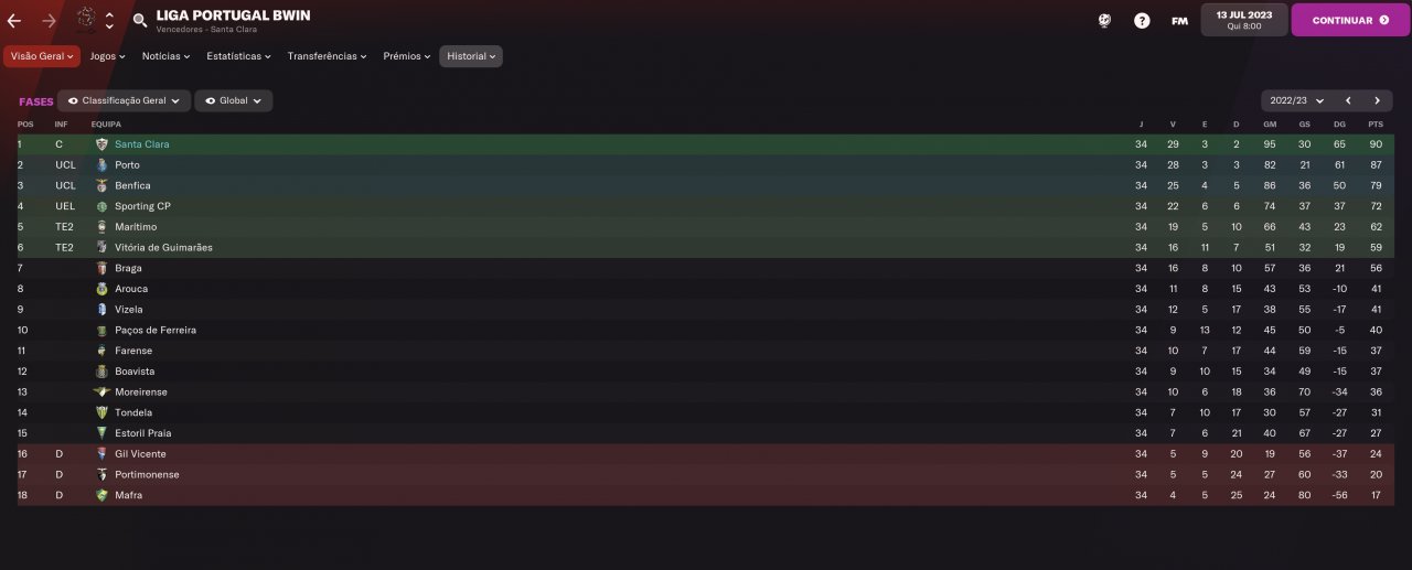 Tested with Santa Clara from Portugal. First seanson 2nd place, second season champion