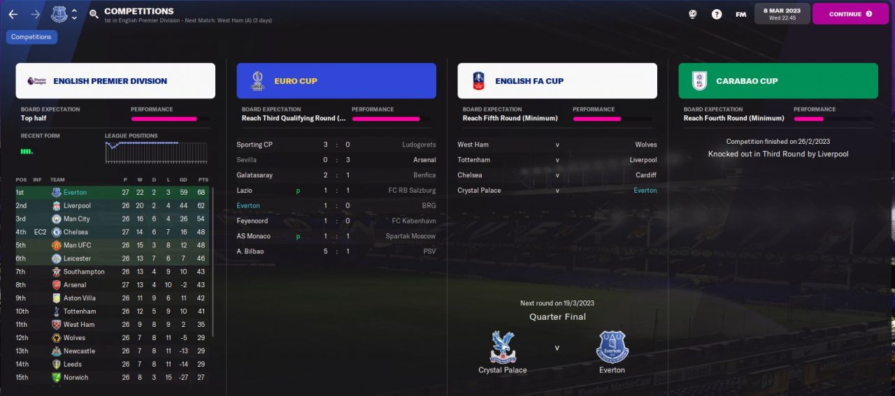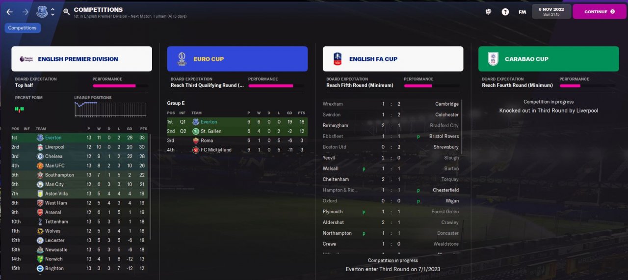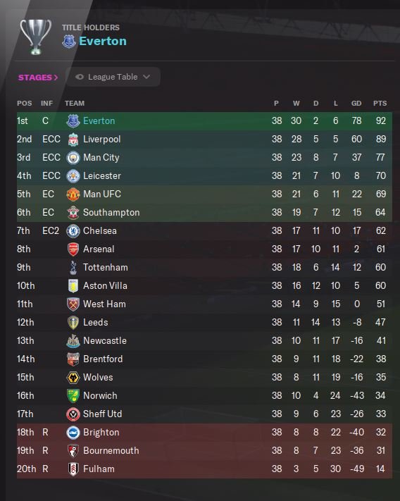 Currently top of the PL after 13 games with a +28 GD and won my EURO Cup group with a GD of +19.