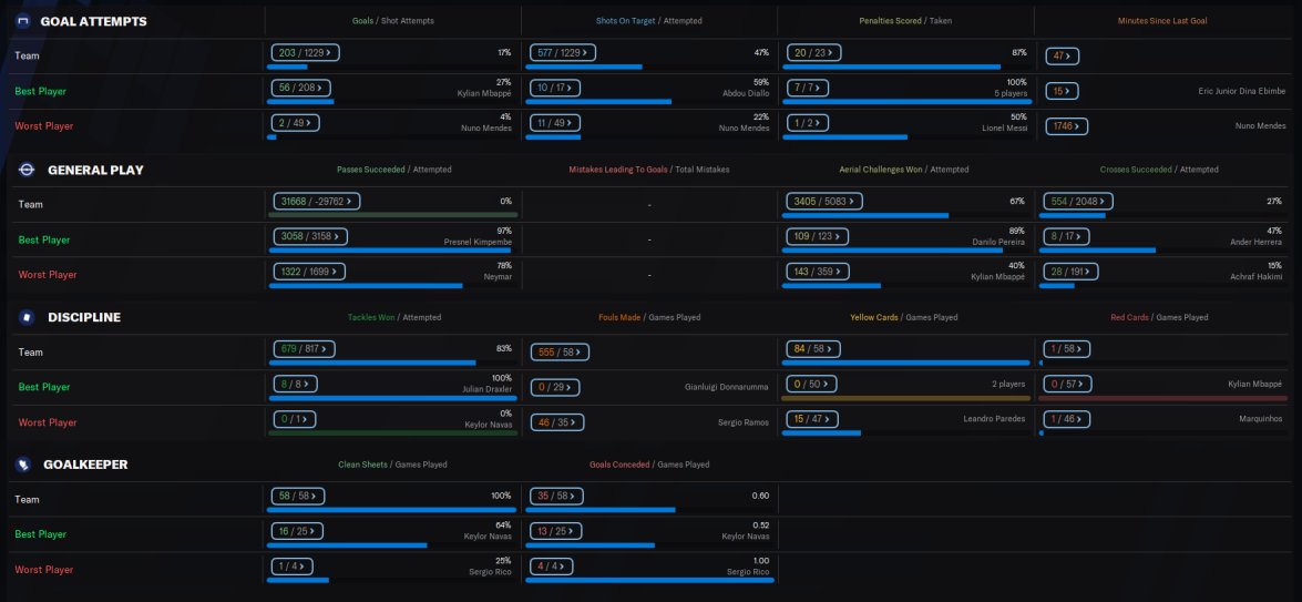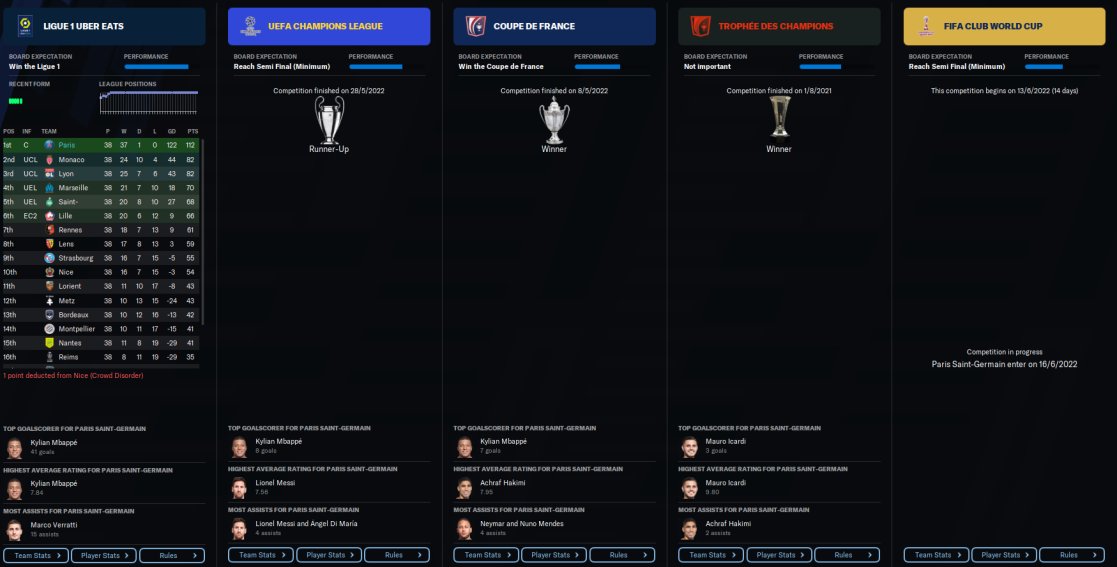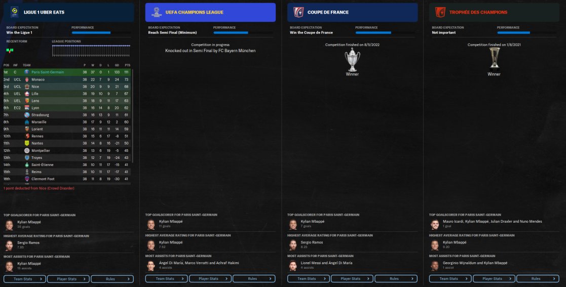 PSG predicted 1st, finished 1st with 112 points, 37 wins 1 draw, won the treble, losing out in the CL final to BVB. Mbappe scoring 56 goals in 57 appearances.