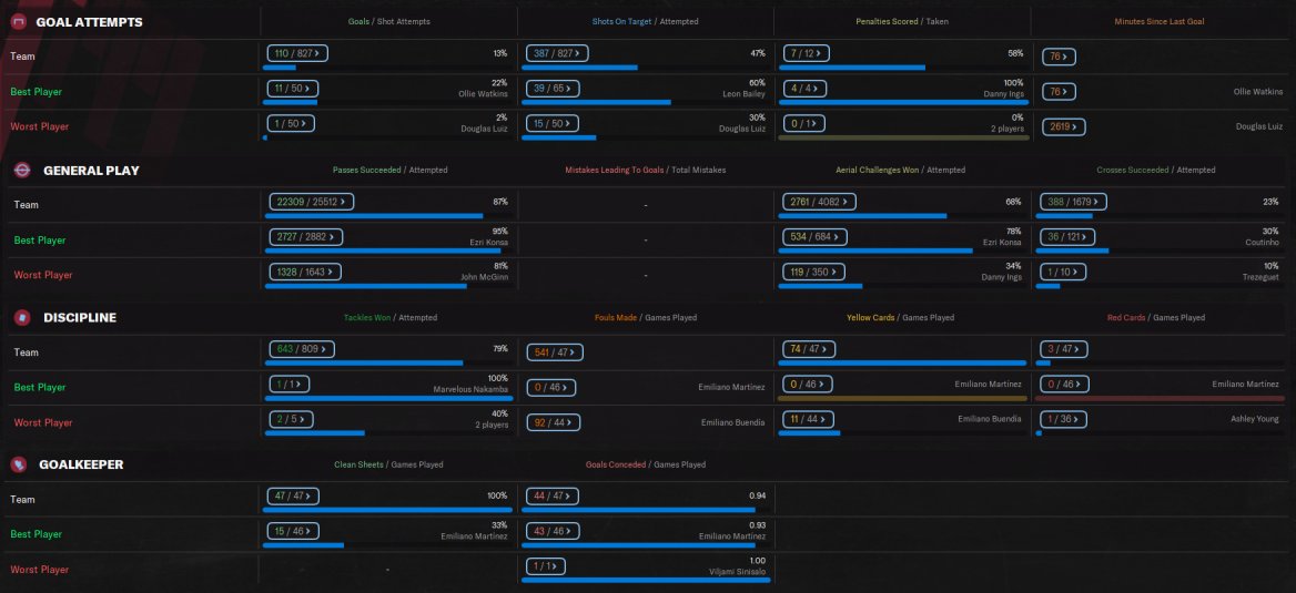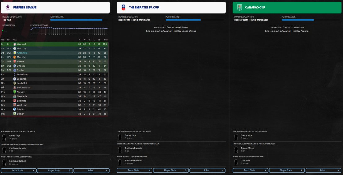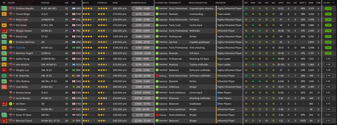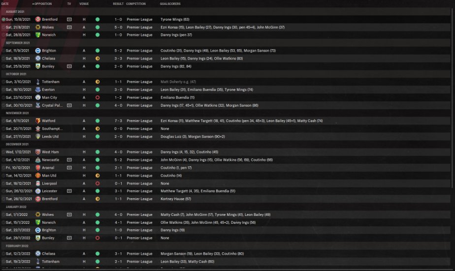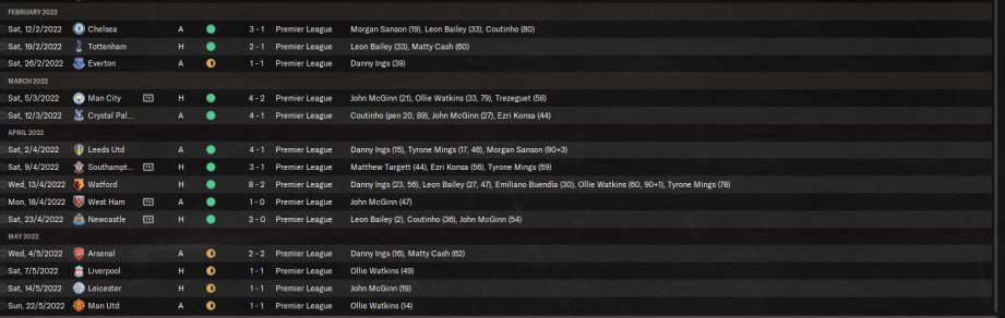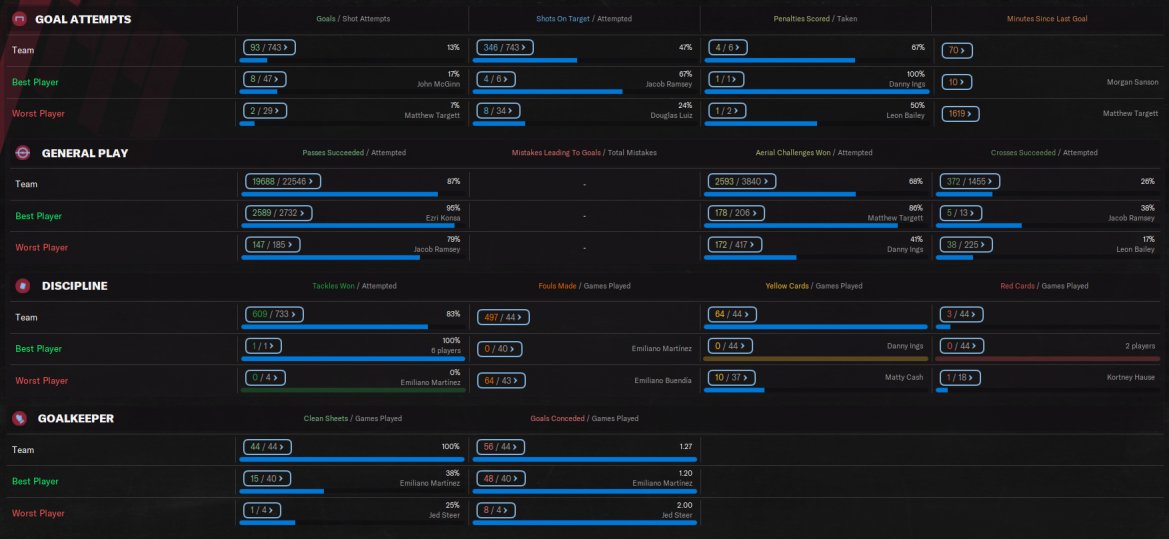 however not fully replicated the top tactic. I have also removed use off side trap as when testing with Villa, the results were much better with Villa finishing 3rd on 84 points. Just felt more solid for them. Conceded less goals and scoring more. Ings scored 26 goals