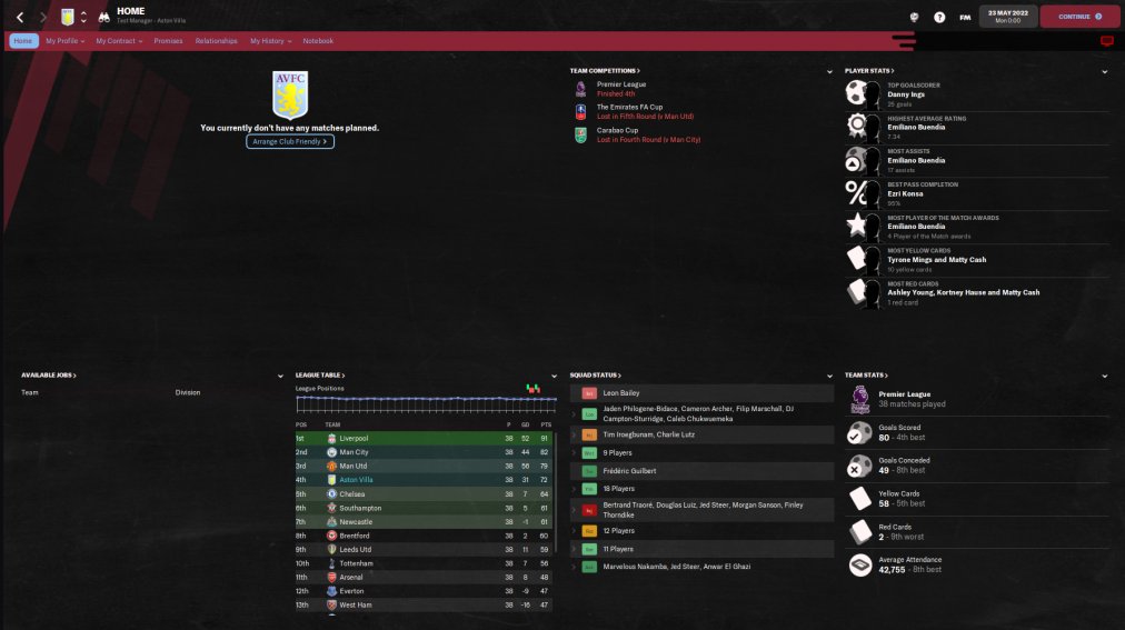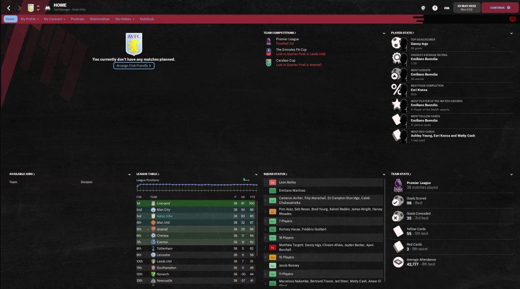 Running a test now with an elite club, as always the Villa test was a holiday test, AM in charge of team selection and general training. No editor used!!