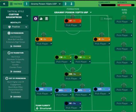 Another one of my FM21 tactics which I have rejuvenated to compliment FM22. The FM21 version https://fm-arena.com/thread/1481-granny-poison-won-all-cups-17-conceded-in-all-comps/