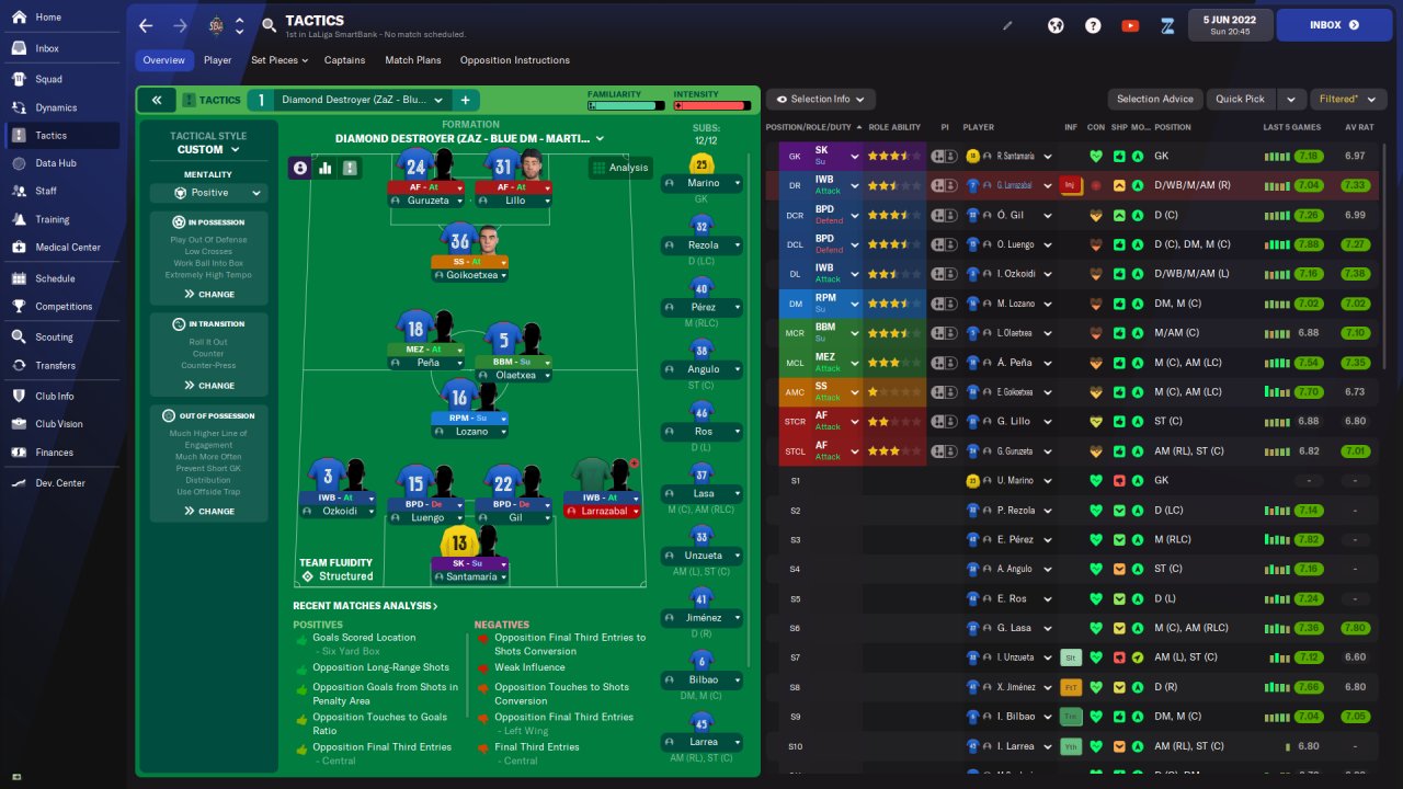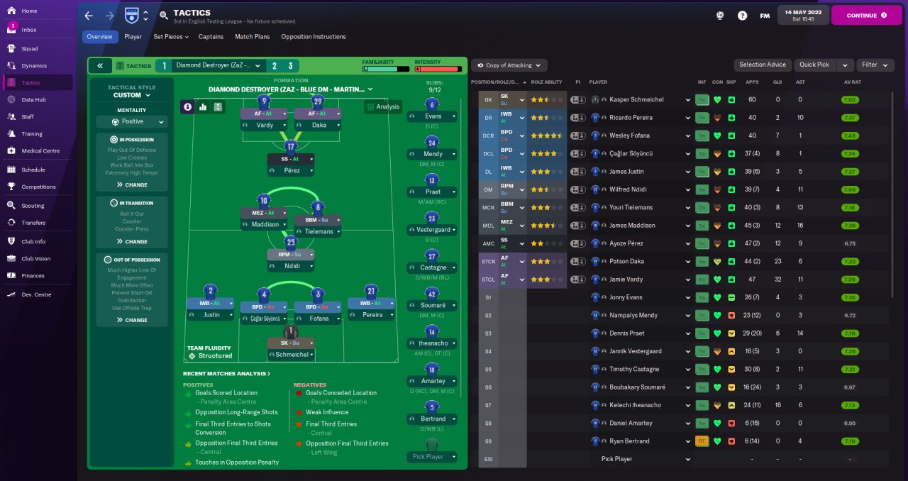 I took two of the best tactics for FM22 ZaZ - Blue DM & Martin Snoop 433 and merged them together to create the Diamond Destroyer with some pretty good results.