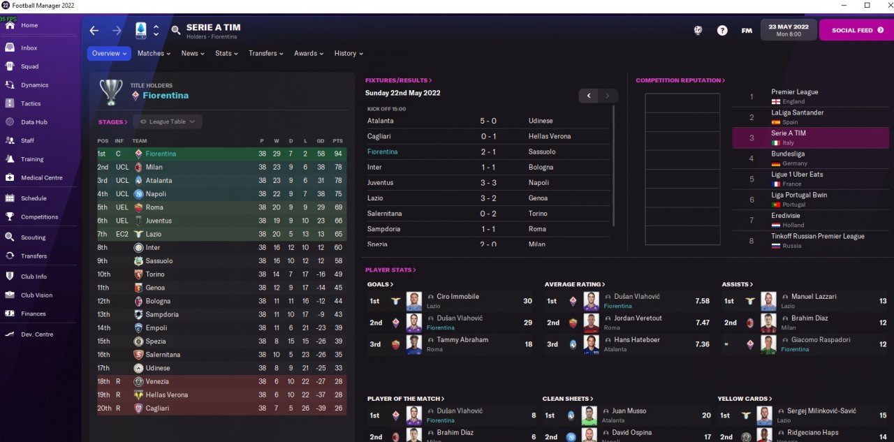 Tried it with Fiorentina media prediction 8th and I was able to win seria A first season.