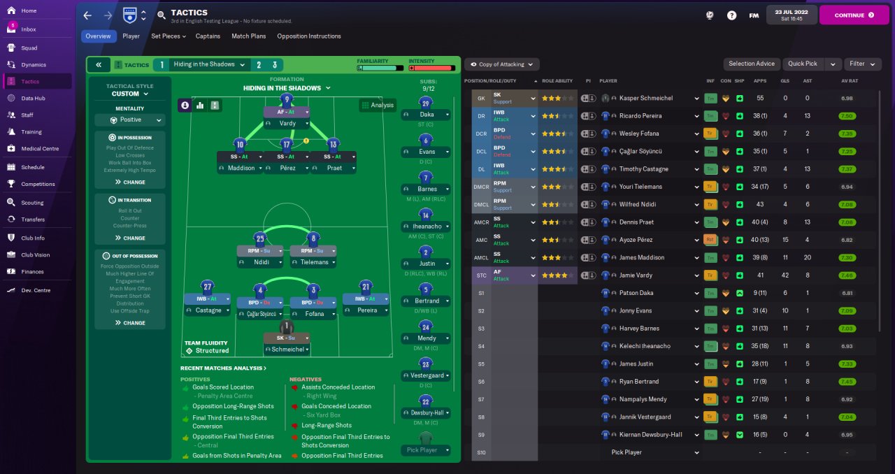 A narrow 4-2-3-1 Formation with 3 Shadow Strikers which I had good success with, based on ZaZ's Blue tactic so credit to him.