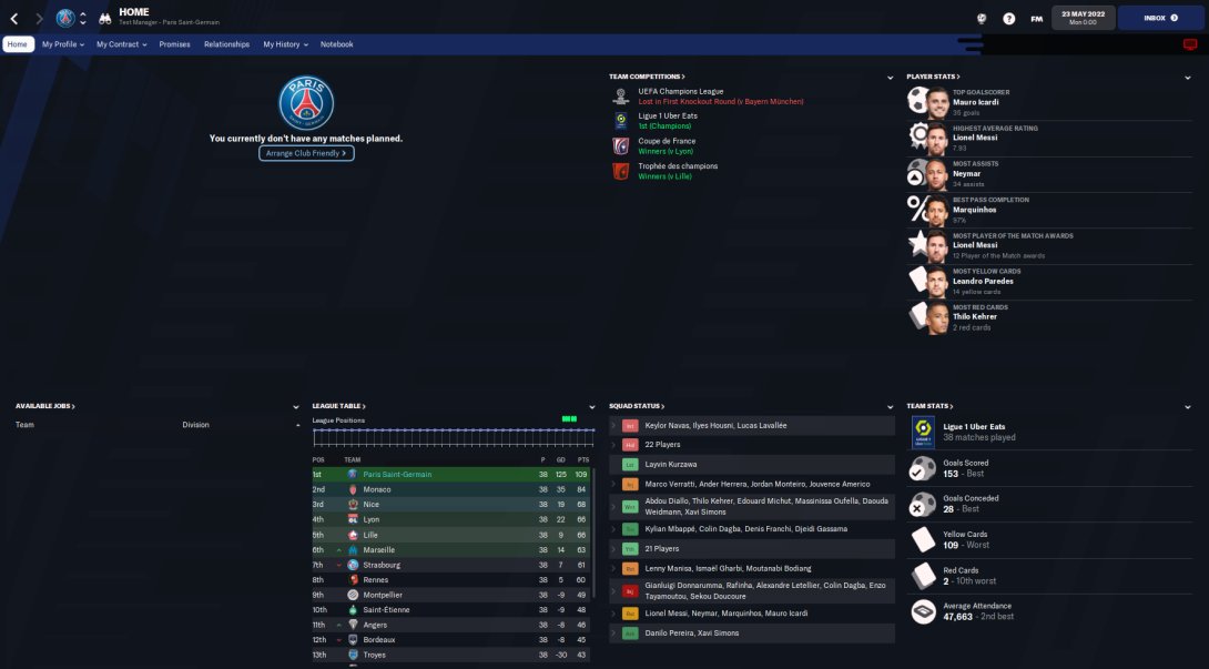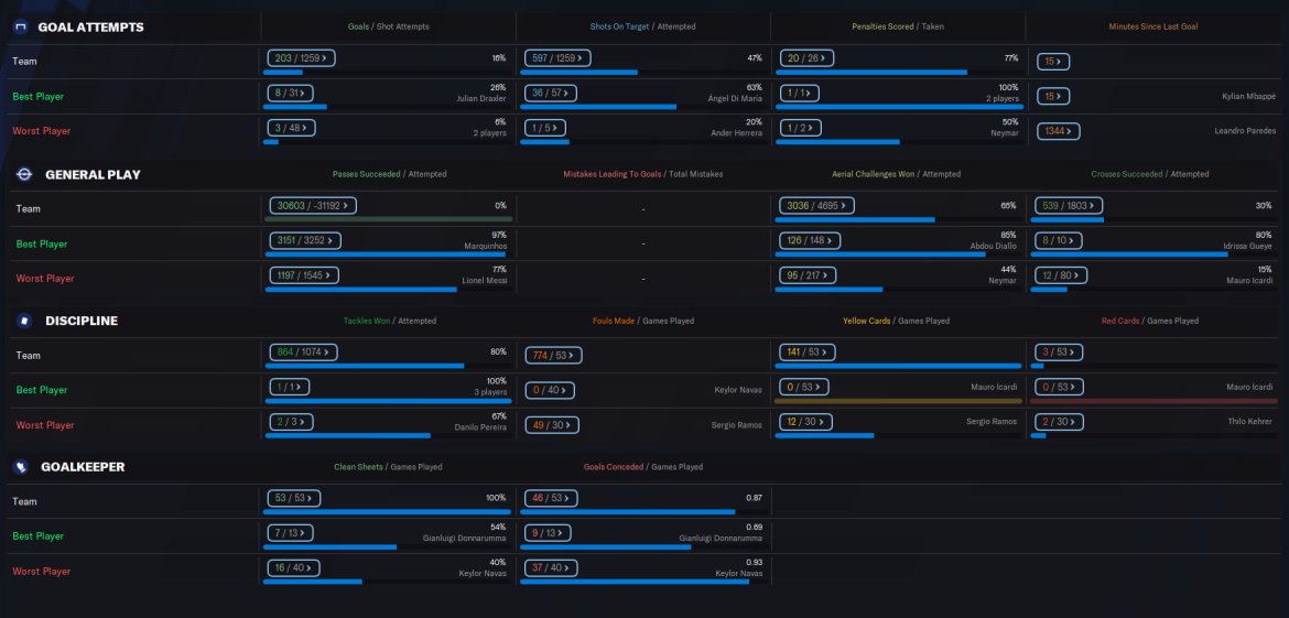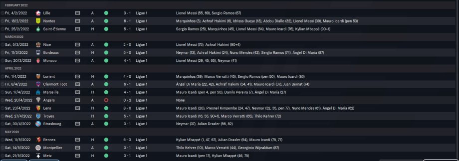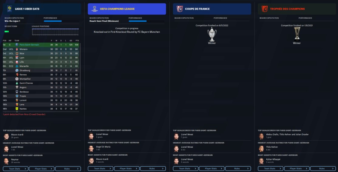 PSG predicted 1st, finished 1st, unfortunately lost out in the CL to Bayern. Achieved 109 points in the league, winning the domestic cups.