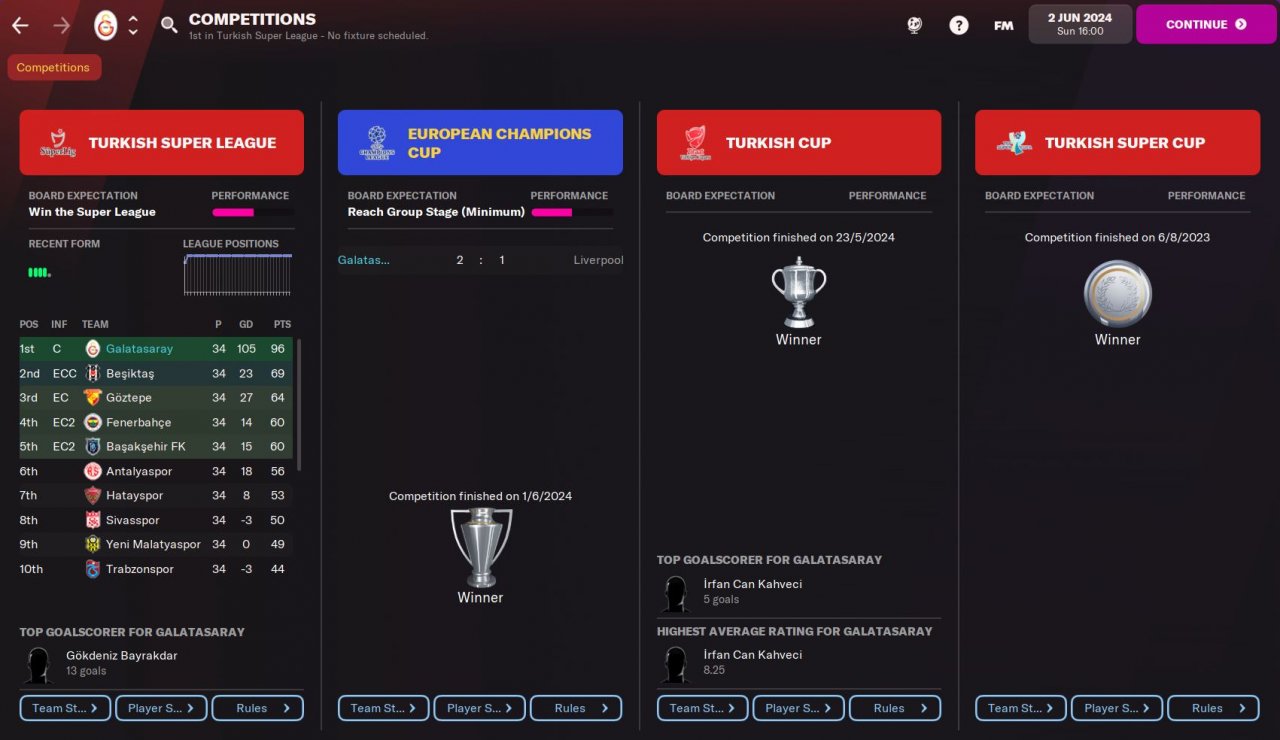 2nd year : Won the Turkish Super League, Turkish Cup, Turkish Super Cup and Semi-final in Champions League