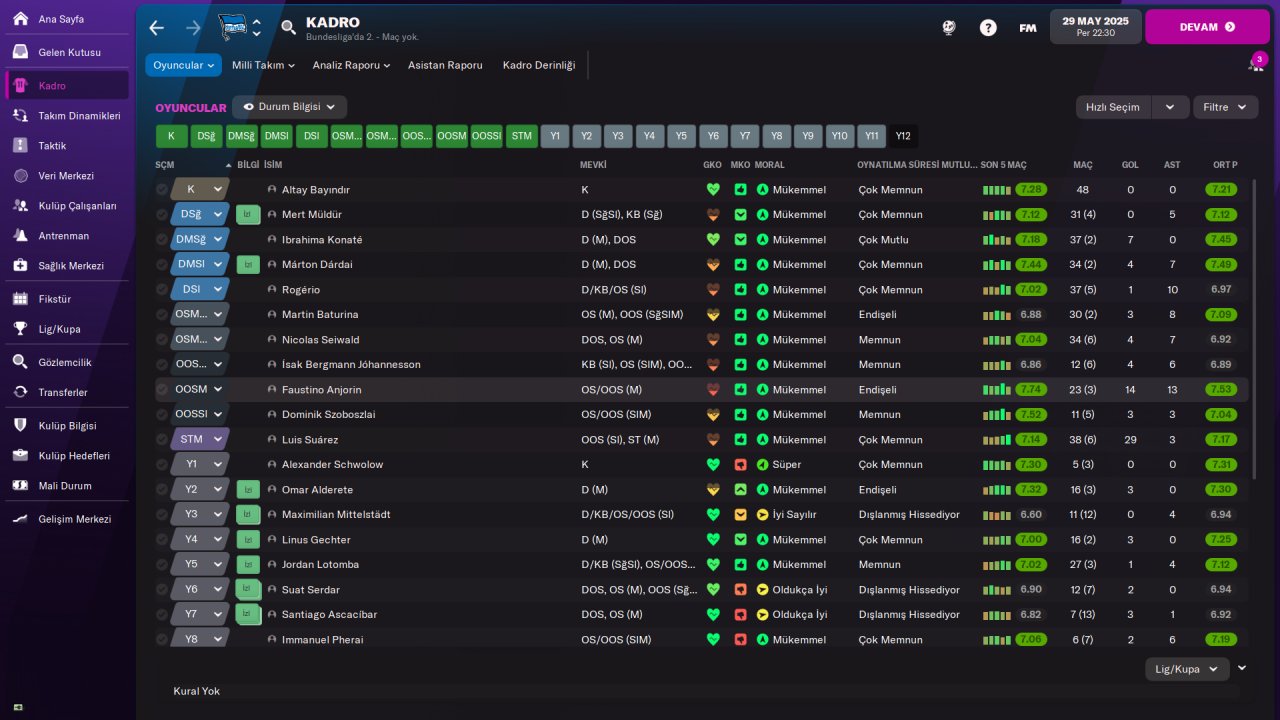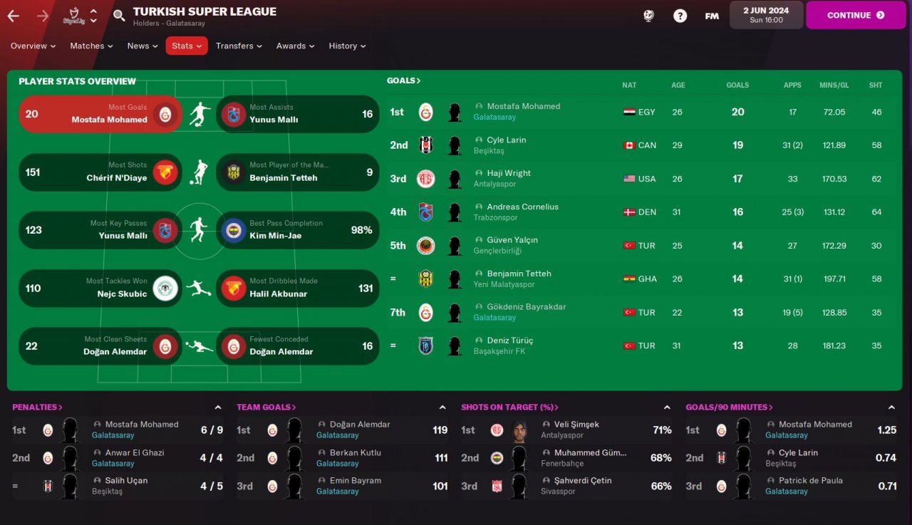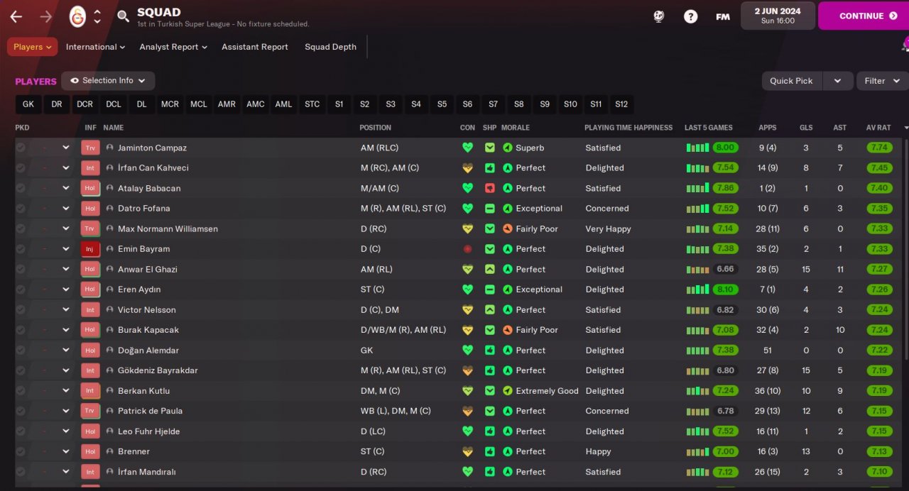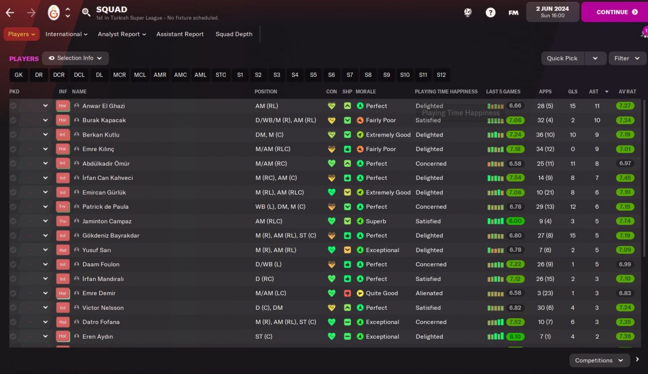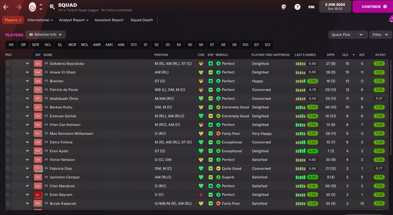 - Second most important position is our Advanced Forward, he must be 14+ finisher with good aerial power, if his pace and acceleration becomes 14+ , it will be very easy to breaking records in domestic and European competitions. In our last season with Galatasaray, we sold Mostafa Mohamed to Torino for 9M EUR, he broked many records both in Turkey and Europe and won the golden boot.