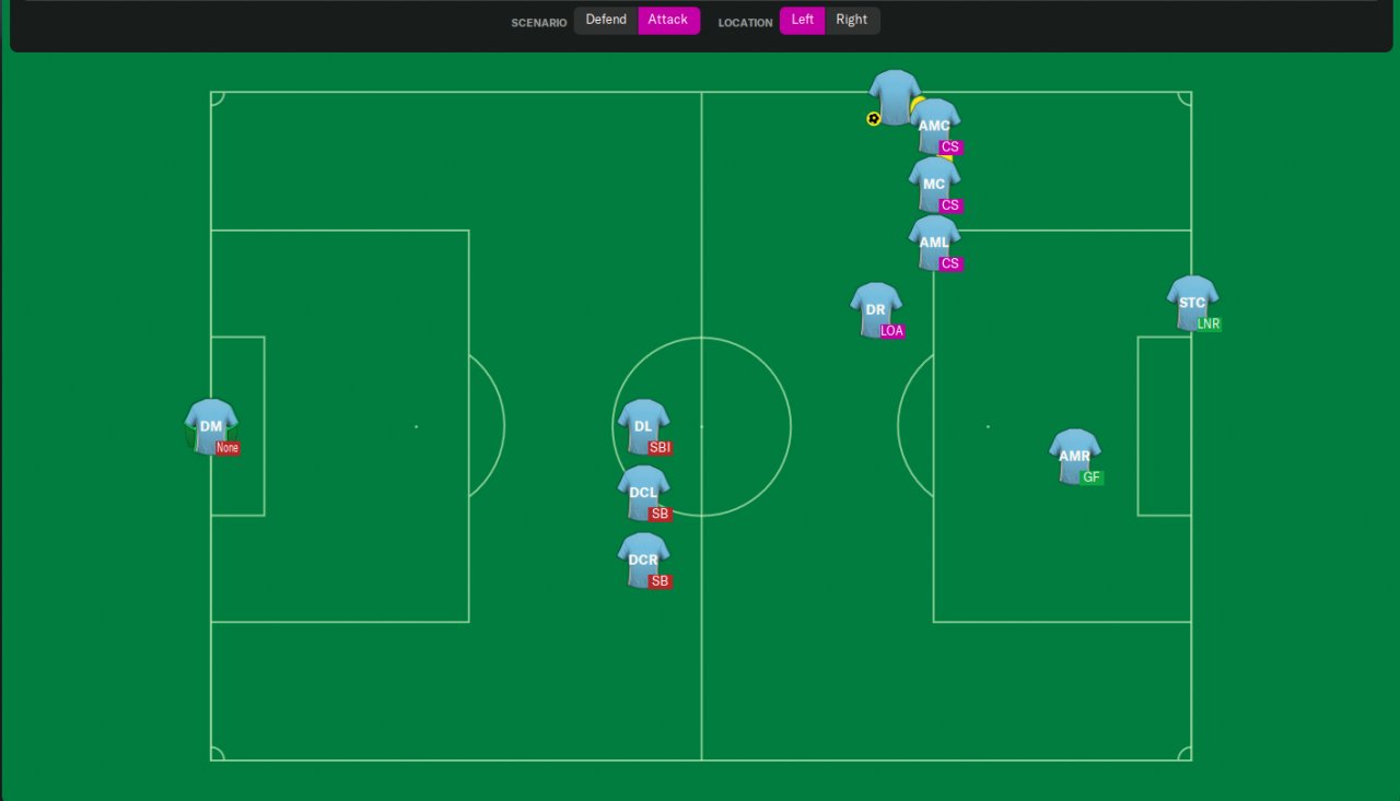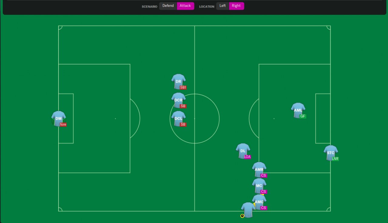 Unfortunately, this short throw-ins setup only works if your tactic has AML/R or ML/R positions and DCM position with "Support" duty, for example, DLP/RPM/DM/BWM ( Support ) on DMC position.