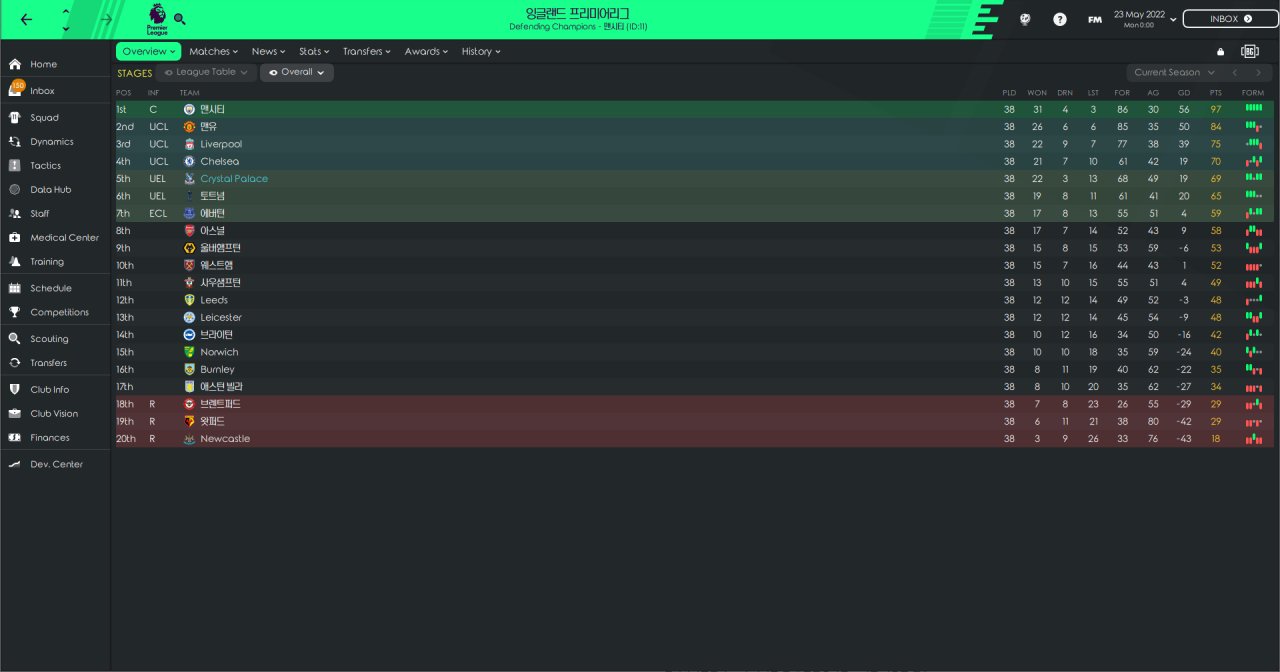 I tested with Tottenham first. And we also tested Palace, which is demoted every time.