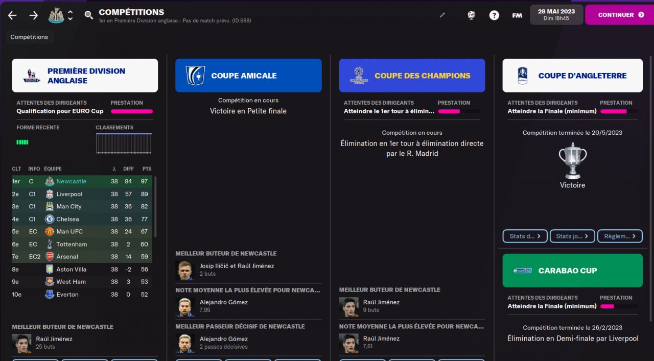 Championship + FA Cup for my 2nd season with Newcastle. And a team that played superbly with a solid defense.