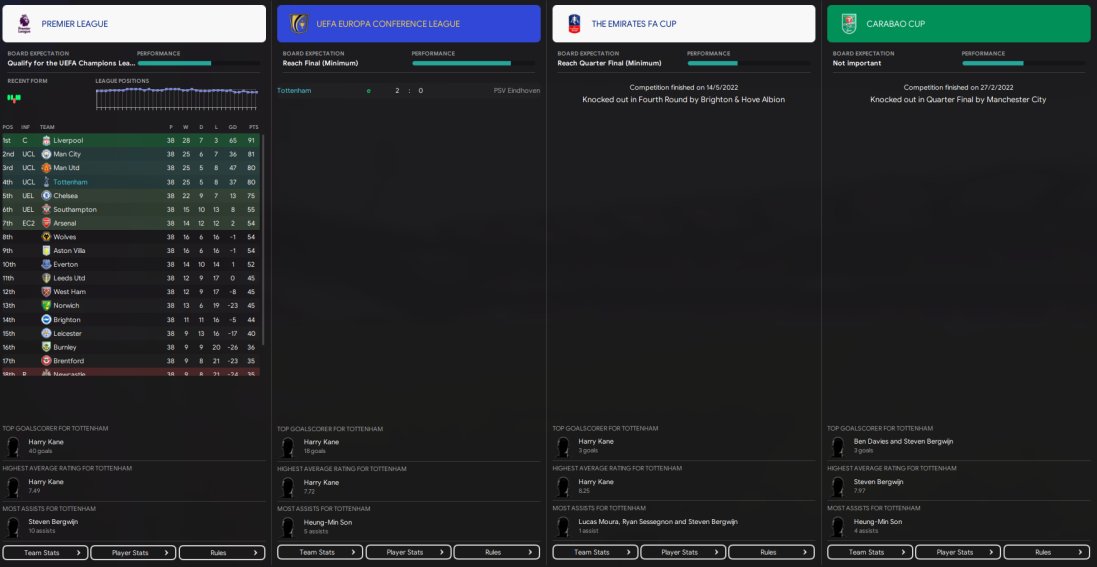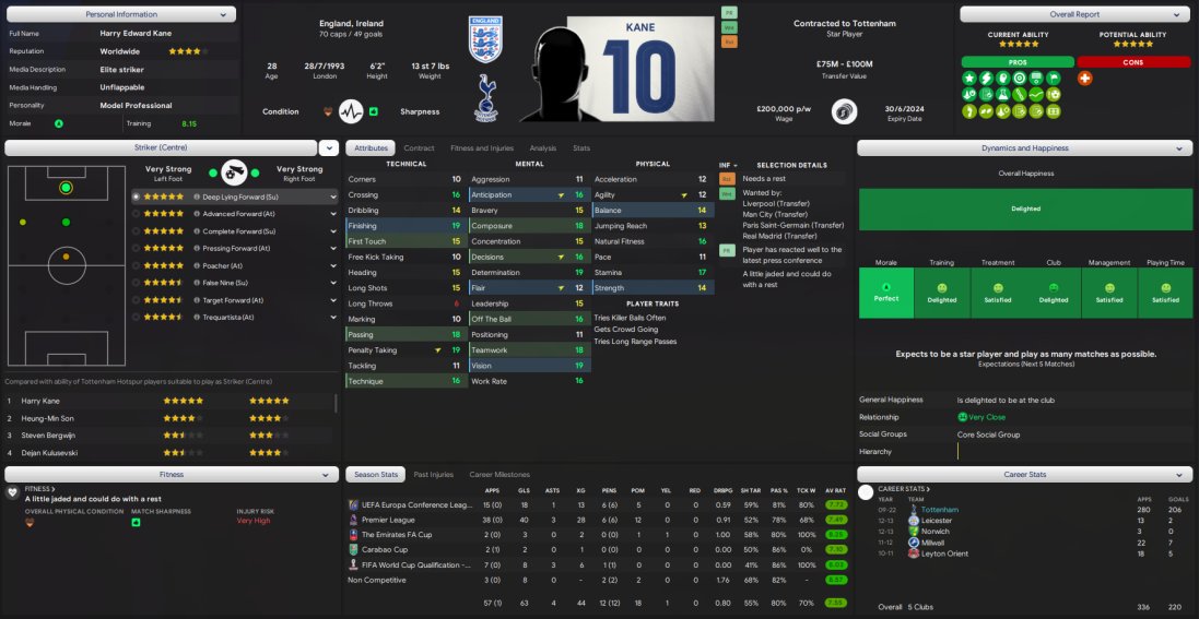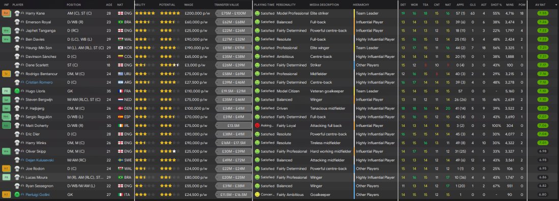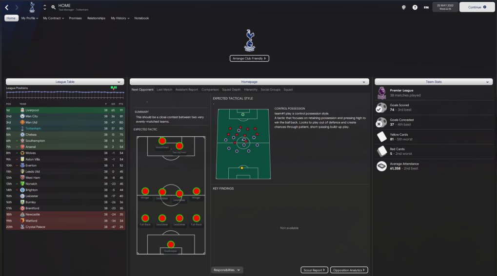Spurs are predicted 5th but managed a top 4 finish and also won the Europa League but I think we all know that Spurs are the greatest on the game and often in saves find themselves in the bottom half of the table, sometimes even relegated. They don't have the biggest squad so to finish 4th on 80 points and win an European competition is a pretty good test in my opinion. Finished 3rd in scoring with 74 and 4th in conceding with 37. Less than a 1 game. Kane top scored with 63 goals in 58.