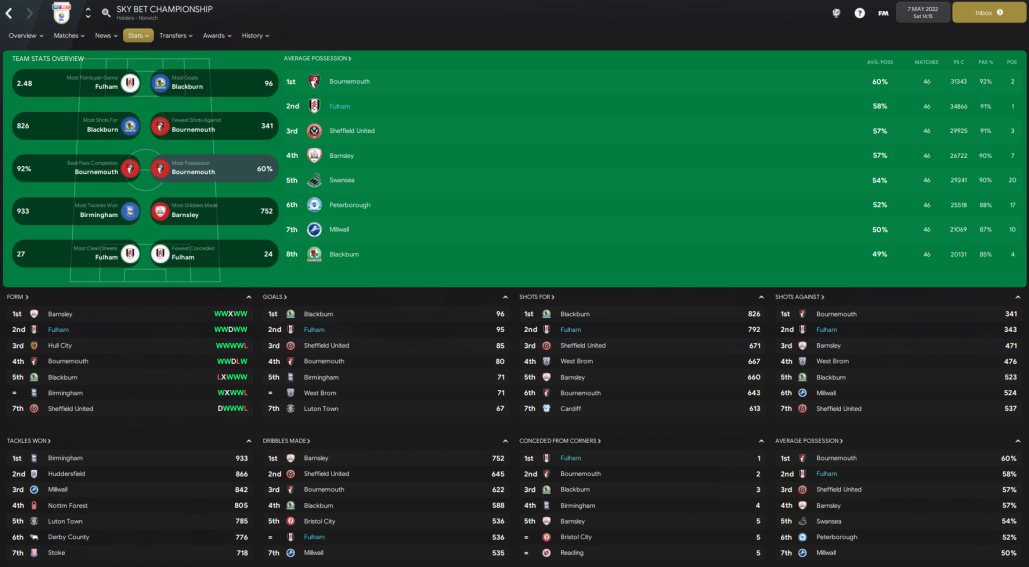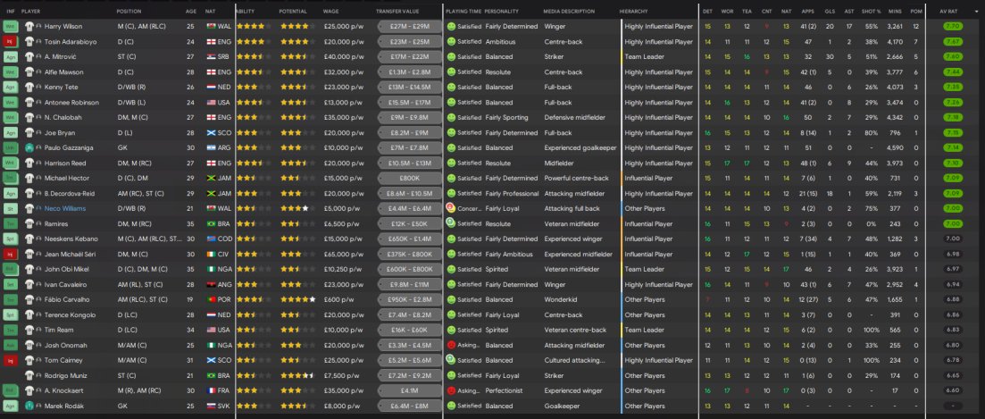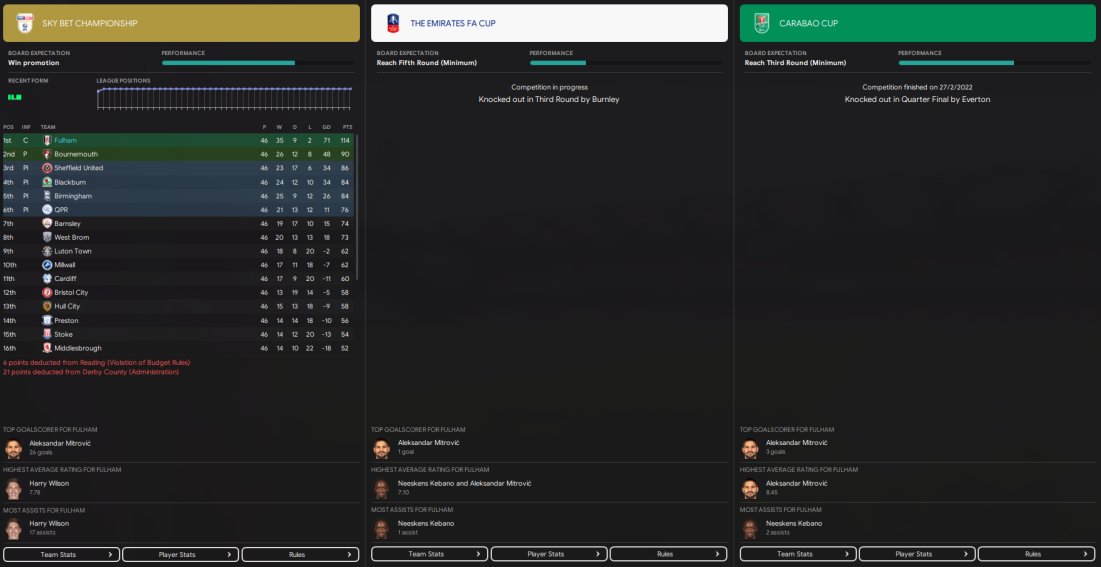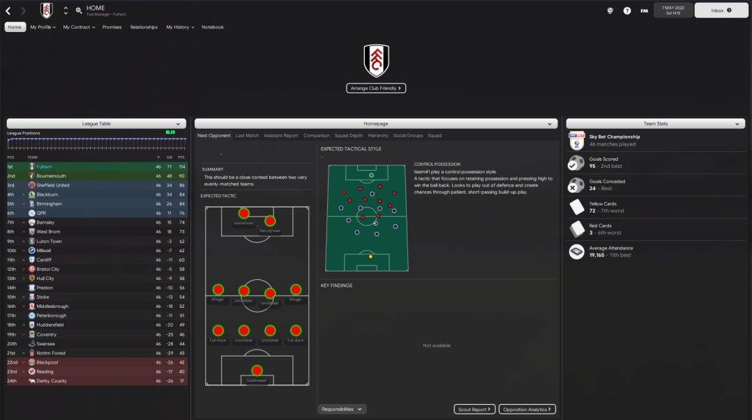 Just ran a test with Fulham, AM in charge of training and team selection. Fulham are predicted to win the league. 2nd best in scoring and best defence with JUST 24 GOALS conceded!!! Won the league with 114 points, 24 points ahead of 2nd placed Bournemouth. Mitrovic top scored with 30 in 32.