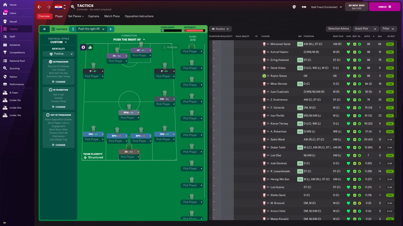 Since Push The Right is one of the highest goals for tactics on FM Arena I decided to tweak the tactic to make it score even more goals while being almost as stable as the original tactic.