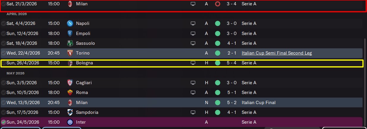 After the Milan game (marked with red) I started using this tactic with the AF.