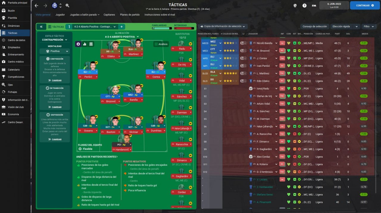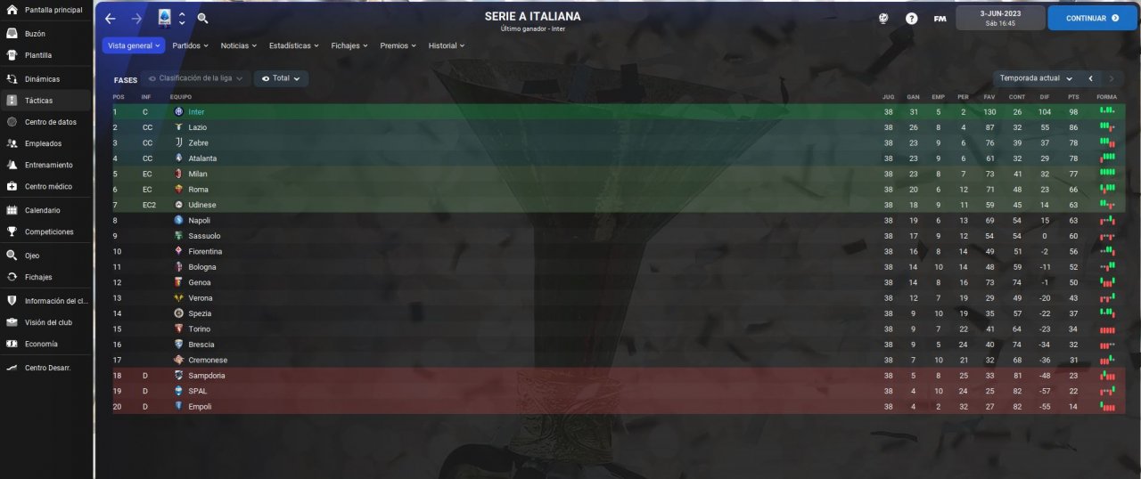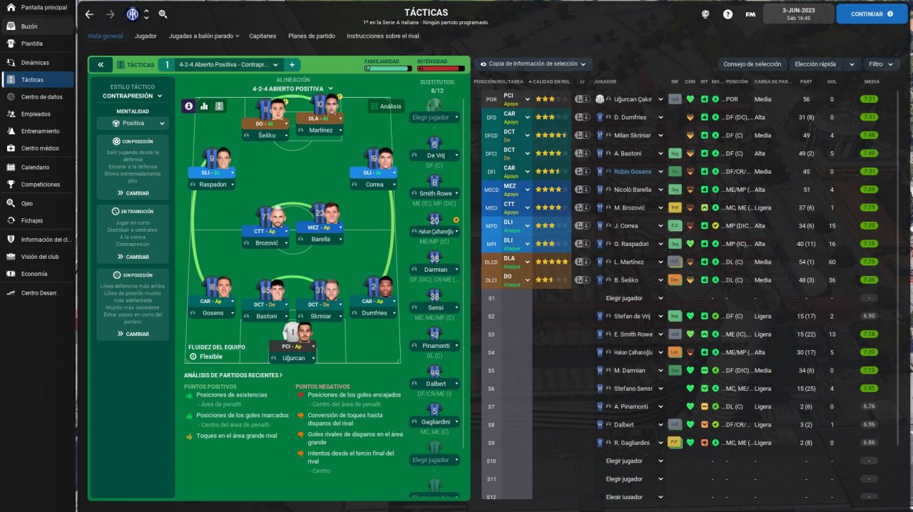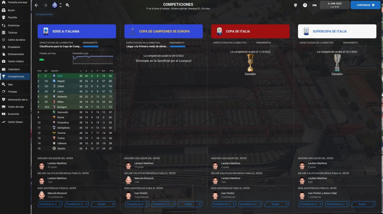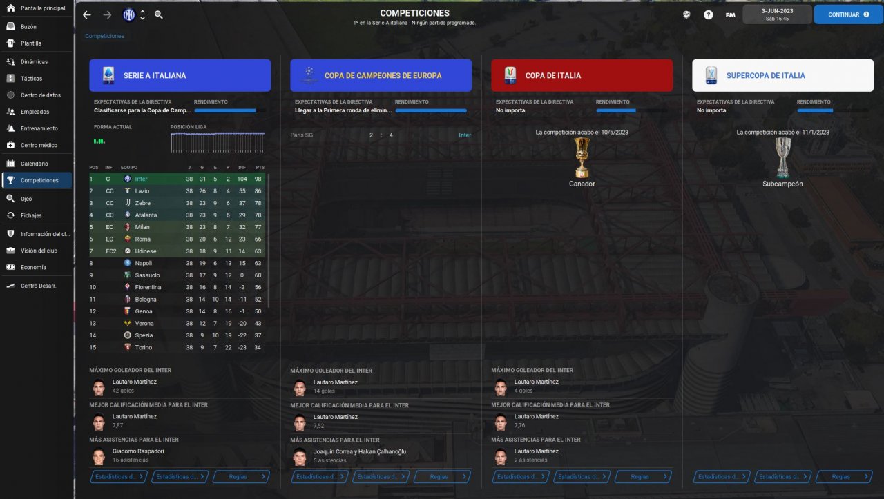 Hello, this is my second tactic. I created a tactic with Internazionale and it went pretty good, played 2 seasons and won league and cup on both. In first season we lost in semi-finals of UCL but on second we managed to win the treble against PSG. Played a lot of games manually and instant resulted a lot of them too. This tactic scores a lot of goals as you can see on screenshoots, strikers will score a lot too, Lautaro went godmode and won ballon d'or. Let me know if you try the tactic.