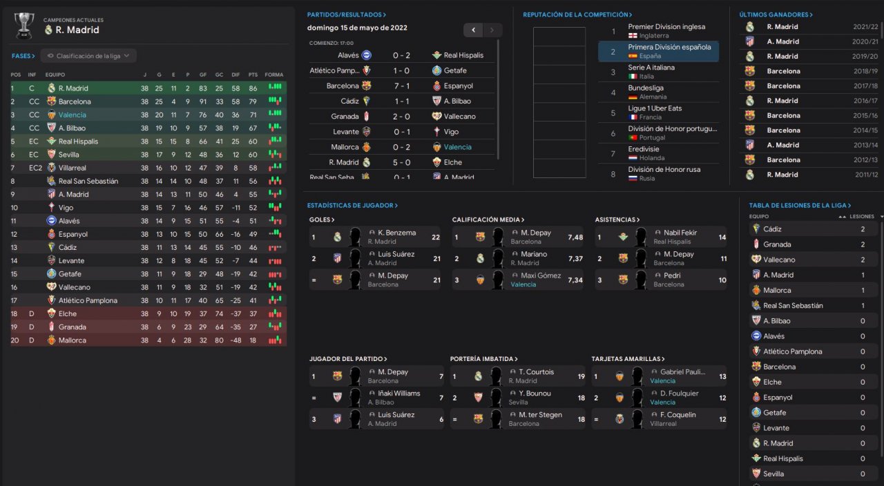 Hiii, this is my first tactic and i try to mejorate the style of football of Jose Bordalas in VCF and i get this!!! i have to say that the first 15 games was with CIN and i was 8oth Position, and i swap into LAT and my team go up in a scandalous way